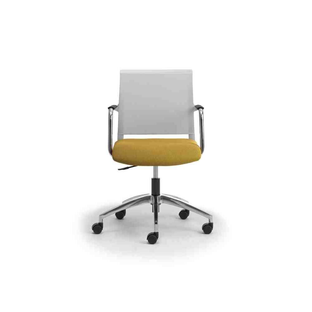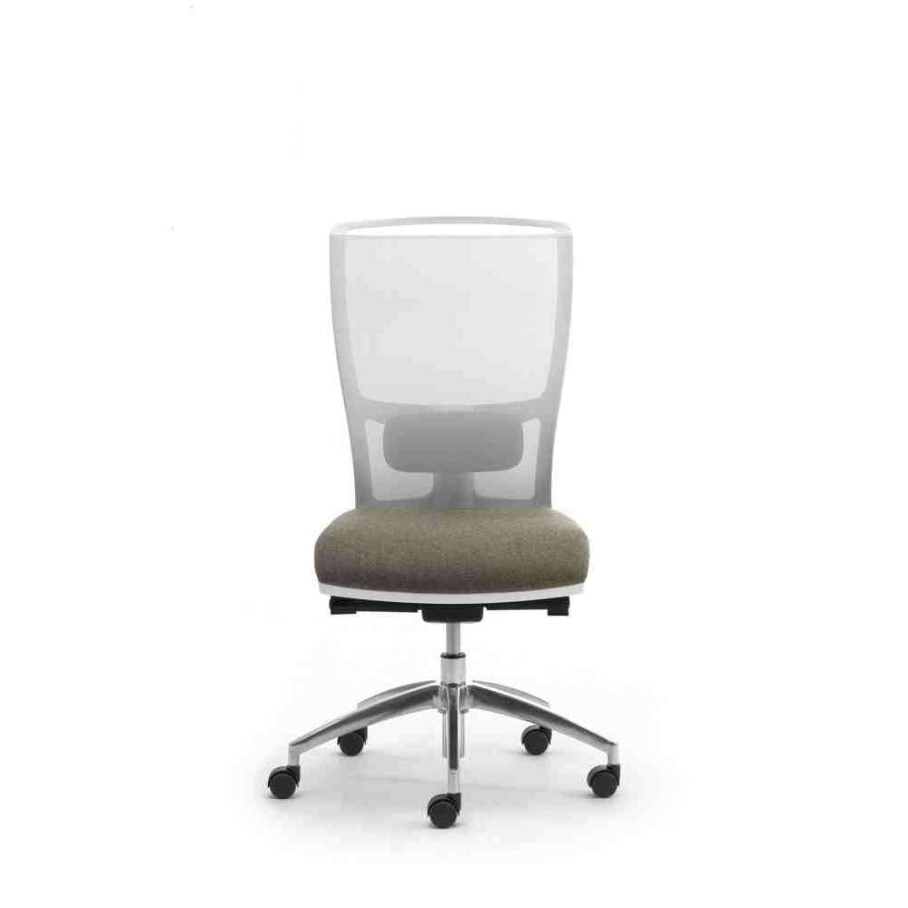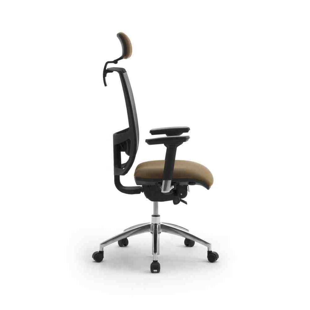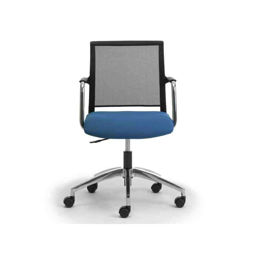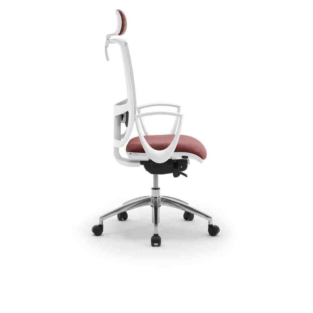 Zsynchronizowany mechanizm przechylania + przesuwane siedzenie. Oparcie z siatki o regulowanej wysokości ze zintegrowaną regulacją podparcia lędźwiowego. Kolory oczek: czarny, szary i biały. Podstawa z polerowanego aluminium lub czarnego nylonu. Samohamowne kółka z nylonu. 3-D (wysokość, szerokość, obrót) lub 4-D (+ regulacja szerokości) lub stałe ramiona z pętlą z miękkimi nakładkami lub stałe ramiona PP. Opcjonalnie regulowany zagłówek. Rama wspornikowa dla gości z podłokietnikami.