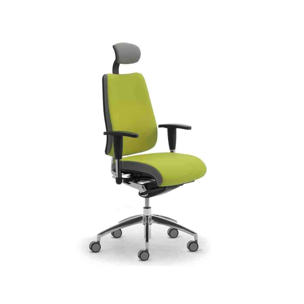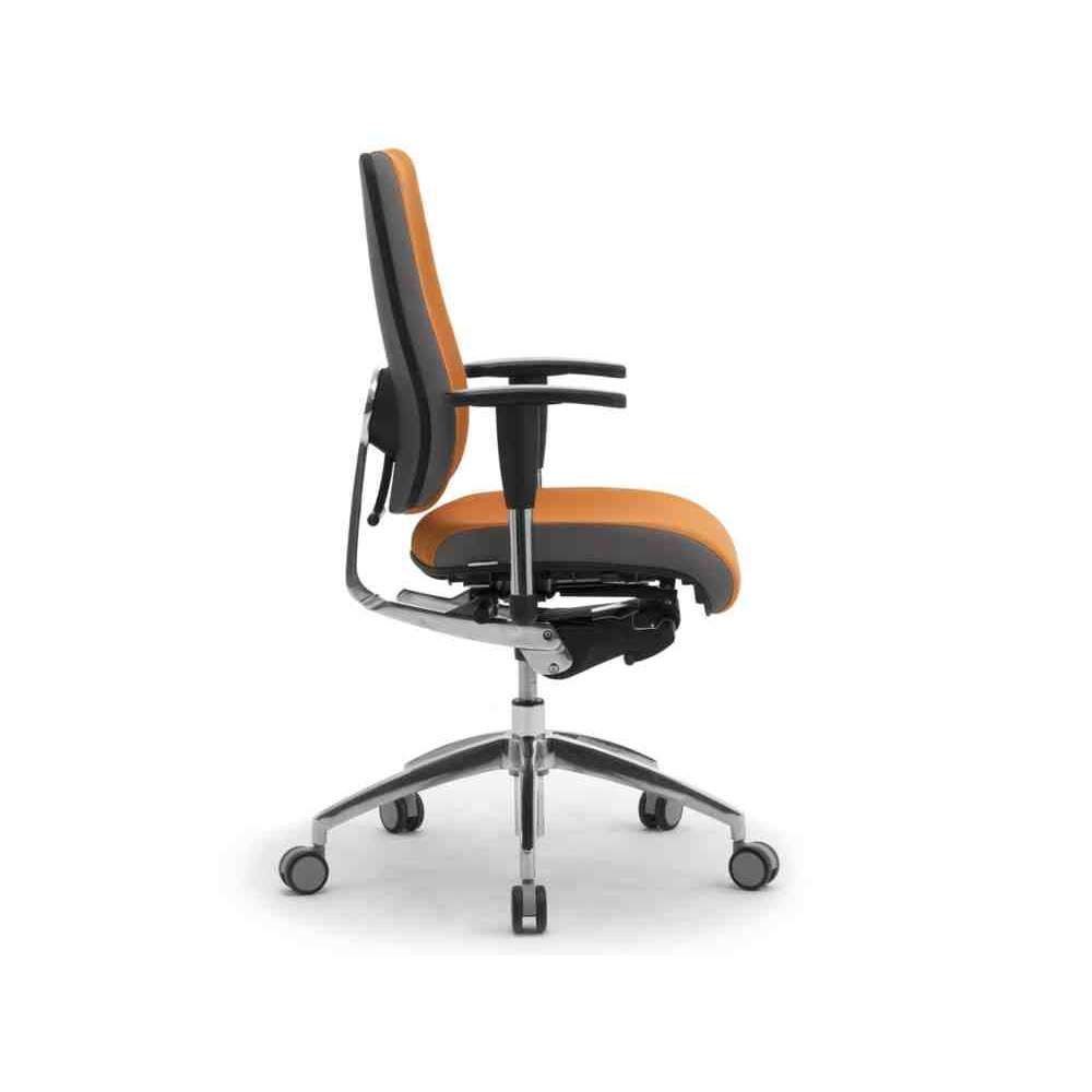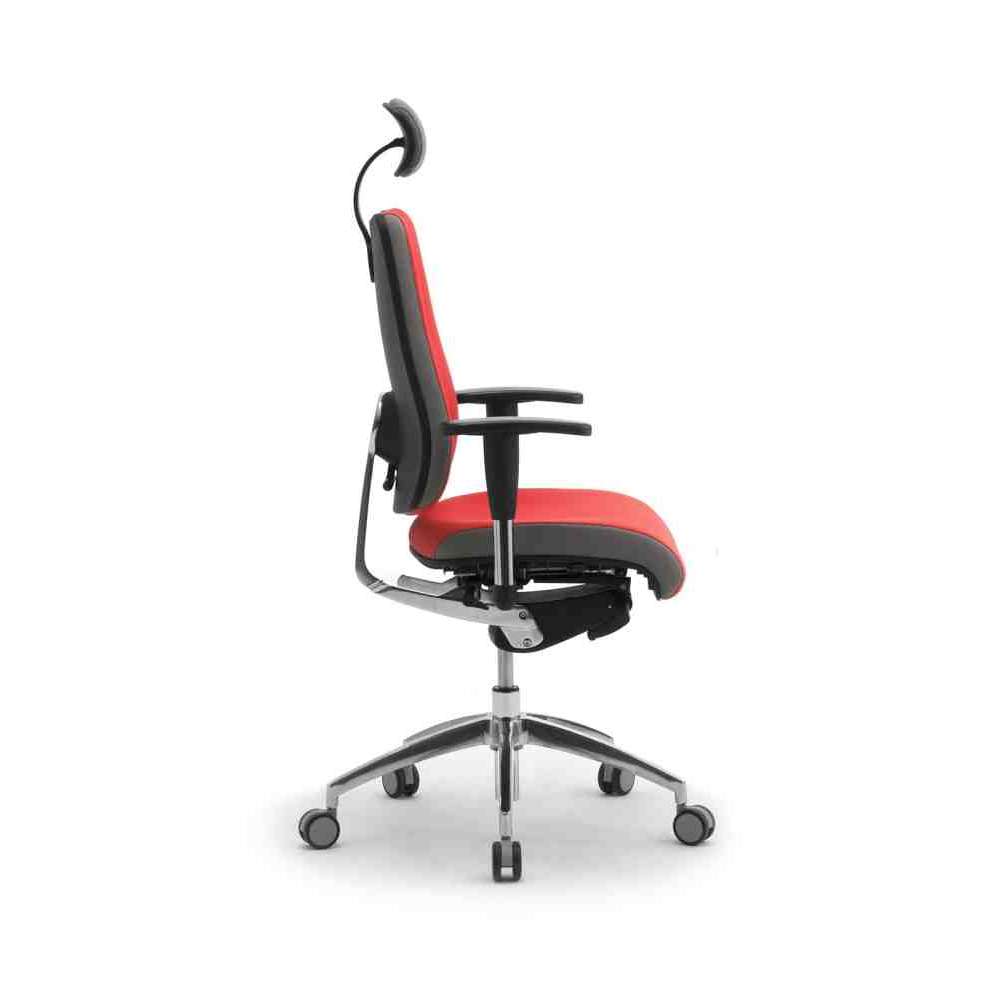 Zsynchronizowany mechanizm przechyłu z 5 pozycjami blokowania, przesuwanym siedziskiem, urządzeniem przeciwwstrząsowym i indywidualną regulacją naciągu. Wyściółka z ekspandowanej pianki uretanowej. Regulacja podparcia lędźwiowego. Podstawa z polerowanego aluminium lub czarnego nylonu z nylonowymi kółkami. Podłokietniki z regulacją wysokości i obrotowe.