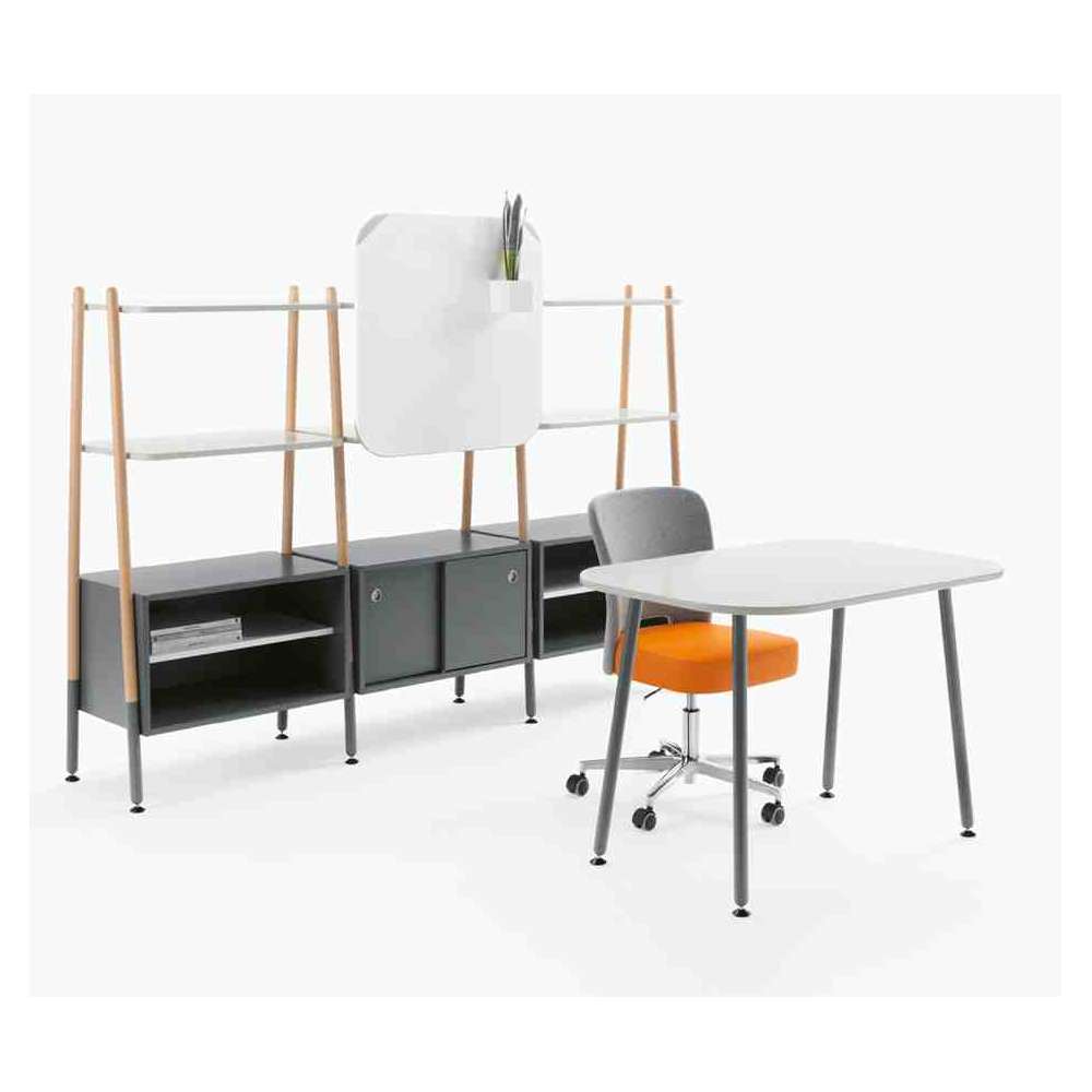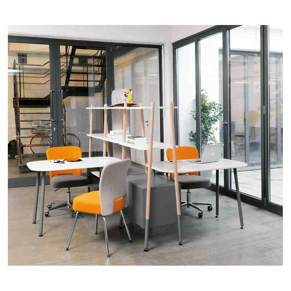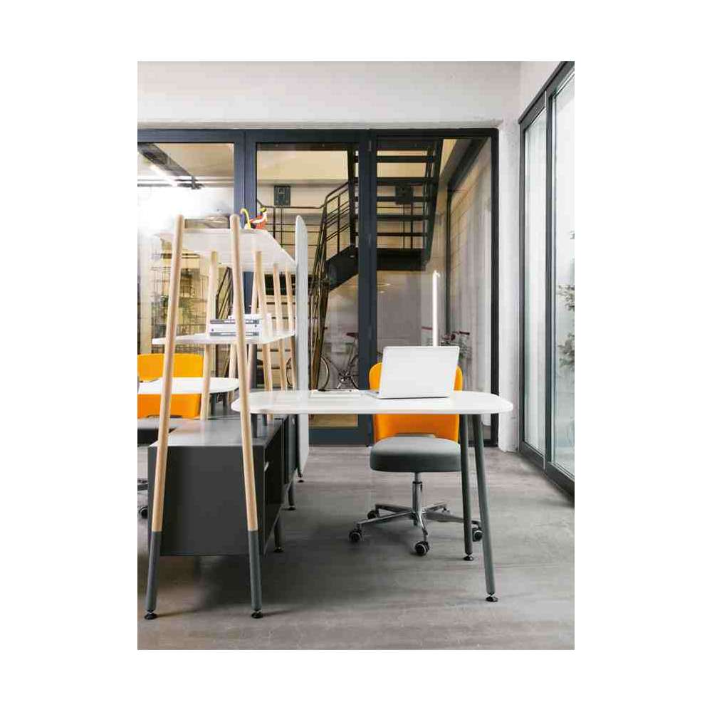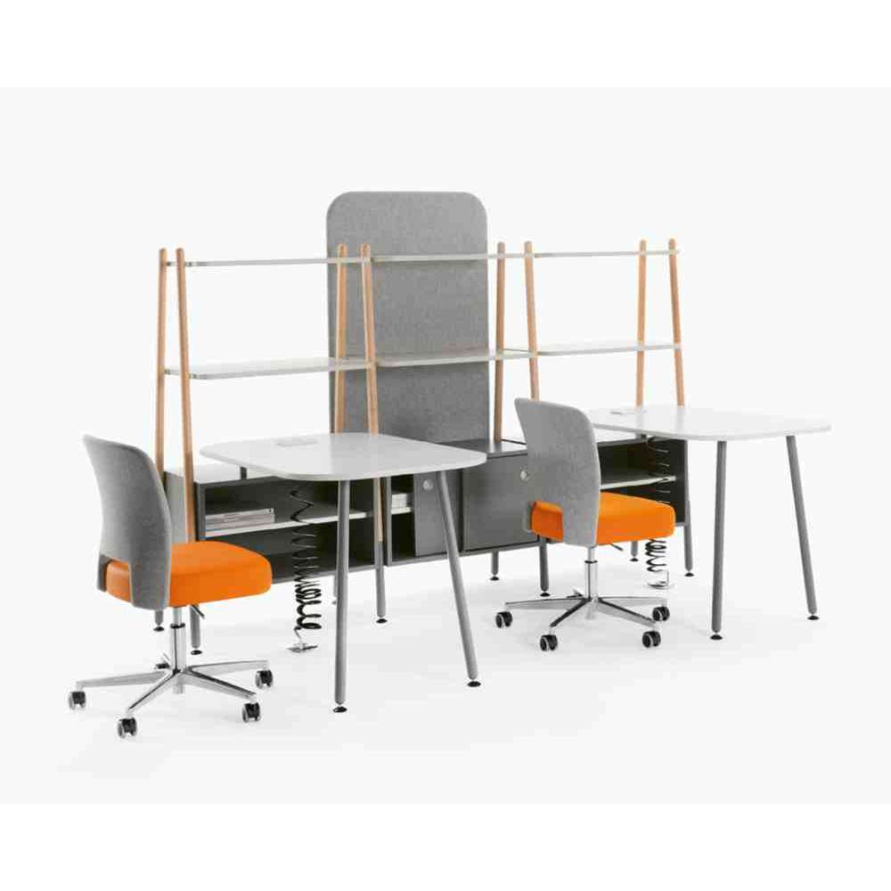 Duża rodzina siedzisk, biurek, stolików i parawanów, do stref przerw, nieformalnych miejsc, w których ludzie mogą swobodnie pracować w zespole, salach wykładowych, muzeach itp. Każdy element został pomyślany tak, aby był trwały, do zatłoczonych miejsc. Rama nośna każdego elementu jest metalowa (okrągły profil stalowy Ø 35 x 2,5 mm) sugerowana w kilku wykończeniach.