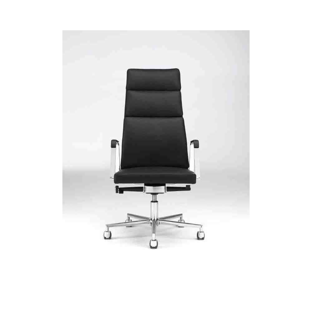 Idealne siedzenie i wyjątkowo smukła konstrukcja. Oparcia od średniego do bardzo wysokiego do przestrzeni zorientowanych na design i prestiżowych. Podłokietniki z litej taśmy stalowej, chromowane, z miękkimi podłokietnikami obitymi skórą.
