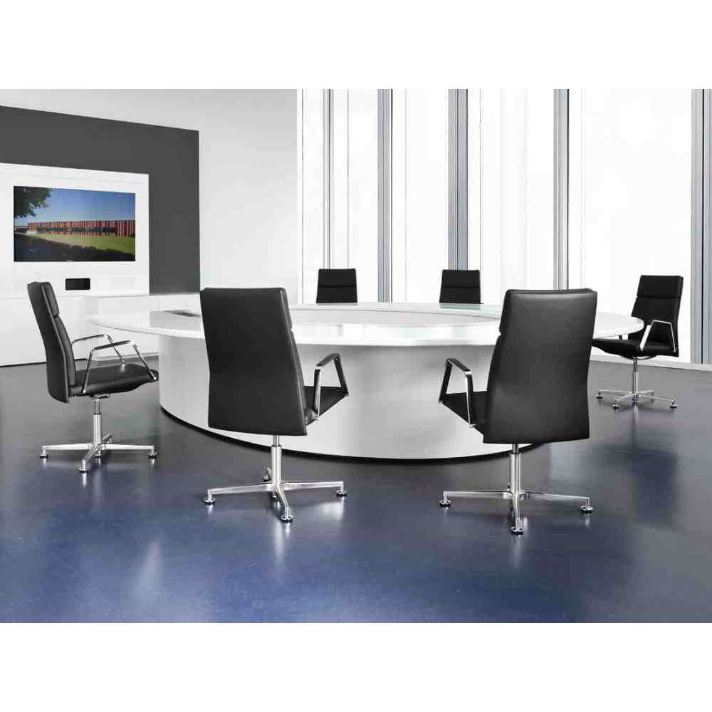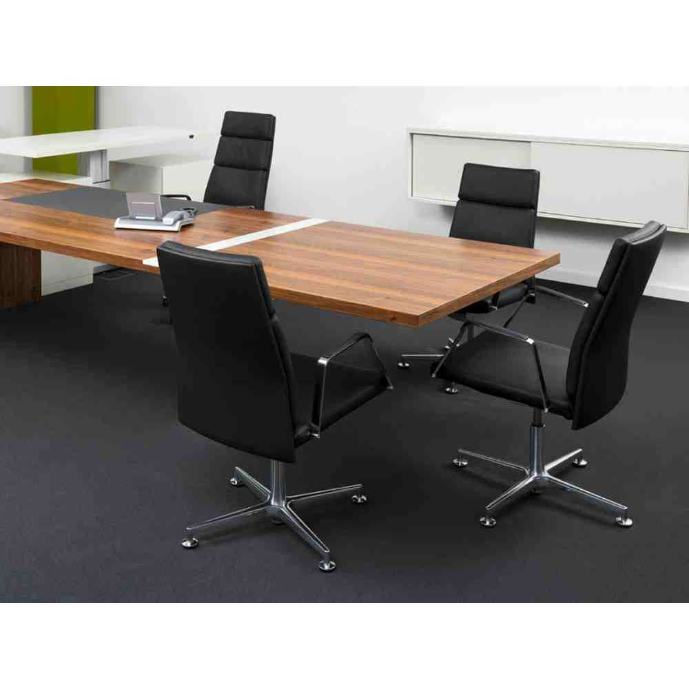 Idealne siedzenie i wyjątkowo smukła konstrukcja. Oparcia od średniego do bardzo wysokiego do przestrzeni zorientowanych na design i prestiżowych. Podłokietniki z litej taśmy stalowej, chromowane, z miękkimi podłokietnikami obitymi skórą.