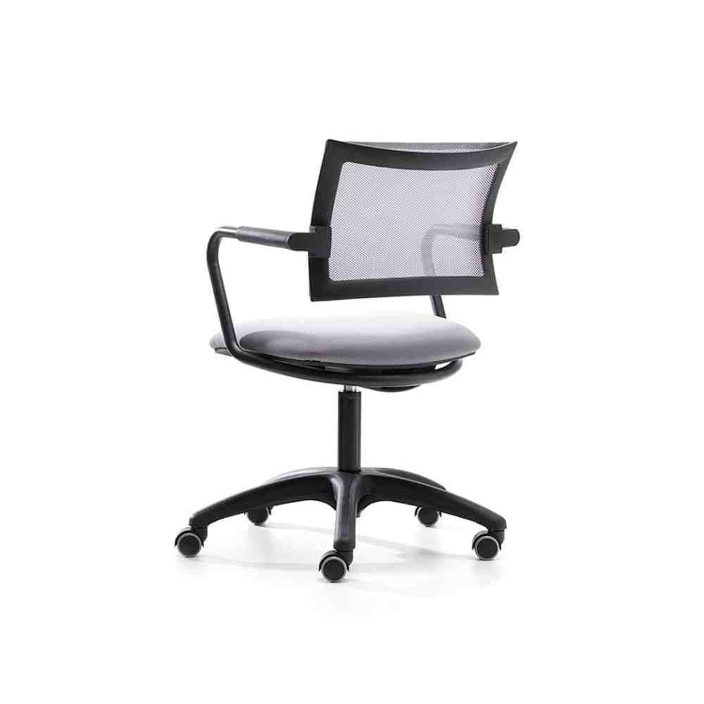 Expo Light Guest to fotel z oparcia o niskiej siatce, obrotowe wysokie regulowane tapicerowane siedzisko, stałe metalowe rurki, podkładka polipropylenowa, gumowe kółka Ø65 lub Ø50.