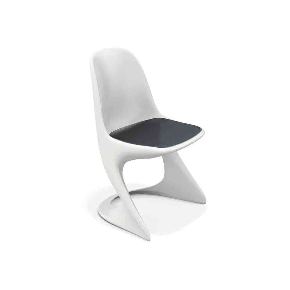Jego ówczesne walory spełniają dzisiejsze wymagania: Casalino jest jednocześnie eleganckie i solidne. Możliwość układania w stosy i łatwe czyszczenie. Trwały kolor i antystatyczny. Casalino jest dostępne jako krzesło wspornikowe z podłokietnikami, krzesło bez podłokietników lub jako stołek. Wyściełane siedzisko jest opcjonalne. Do wszystkich tych produktów pasują stoły Casalino.
