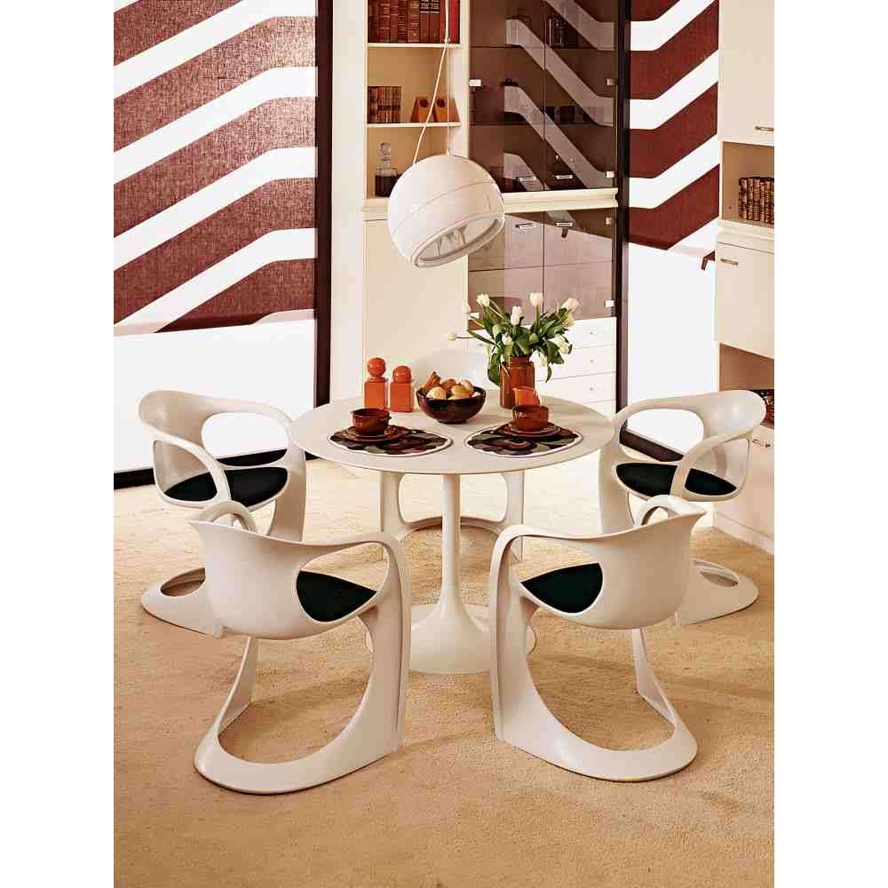 Jego ówczesne walory spełniają dzisiejsze wymagania: Casalino jest jednocześnie eleganckie i solidne. Możliwość układania w stosy i łatwe czyszczenie. Trwały kolor i antystatyczny. Casalino jest dostępne jako krzesło wspornikowe z podłokietnikami, krzesło bez podłokietników lub jako stołek. Wyściełane siedzisko jest opcjonalne. Do wszystkich tych produktów pasują stoły Casalino.