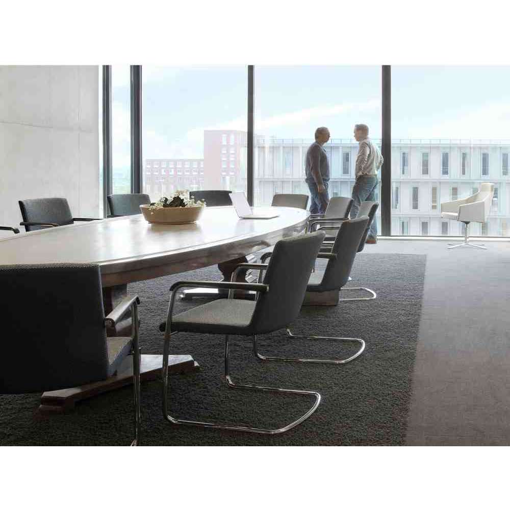 Leon to krzesło o wyjątkowych cechach. Solidna rama wspornikowa i wyjątkowo luksusowa tapicerka tworzą podstawę ergonomicznego środowiska pracy. Wsparcie i komfort; przez długie dni robocze. Standardowe podłokietniki z tworzywa sztucznego lub opcjonalnie z litego naturalnego drewna bukowego, orzechowego lub dębowego jeszcze bardziej podkreślają jego osobowość. Design również musi się sprawdzać w szczegółach. W przypadku Leona oznacza to: połączenia śrubowe nie są widoczne dzięki innowacyjnej technologii. Rama jest doskonale spawana, a podłokietniki uzupełniają dłonie. Dla optymalnego komfortu wnętrze siedziska składa się z warstw. W razie potrzeby Leon można sztaplować, a dla wymagających jest wyposażony w wyższe oparcie. Oprócz standardu dostępna jest również tapicerka de luxe.
