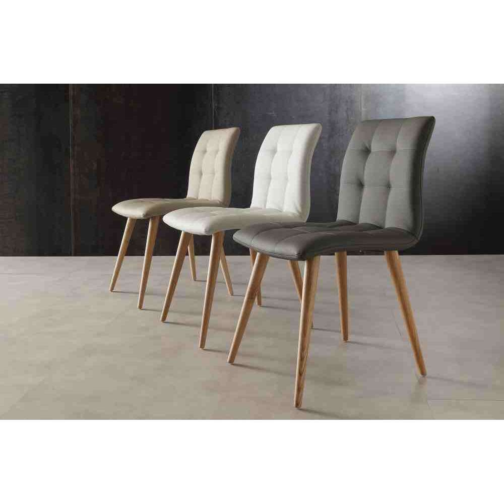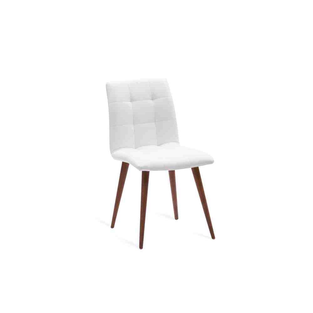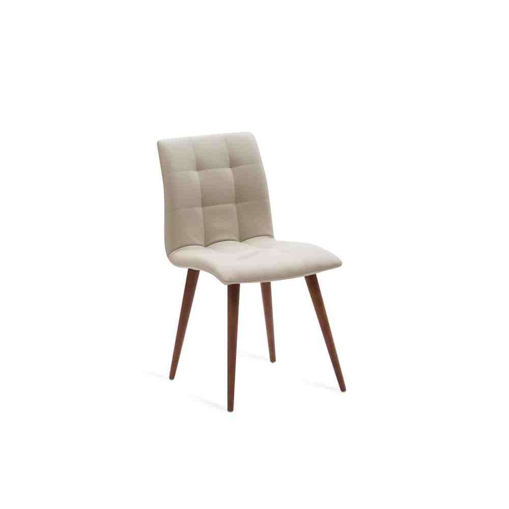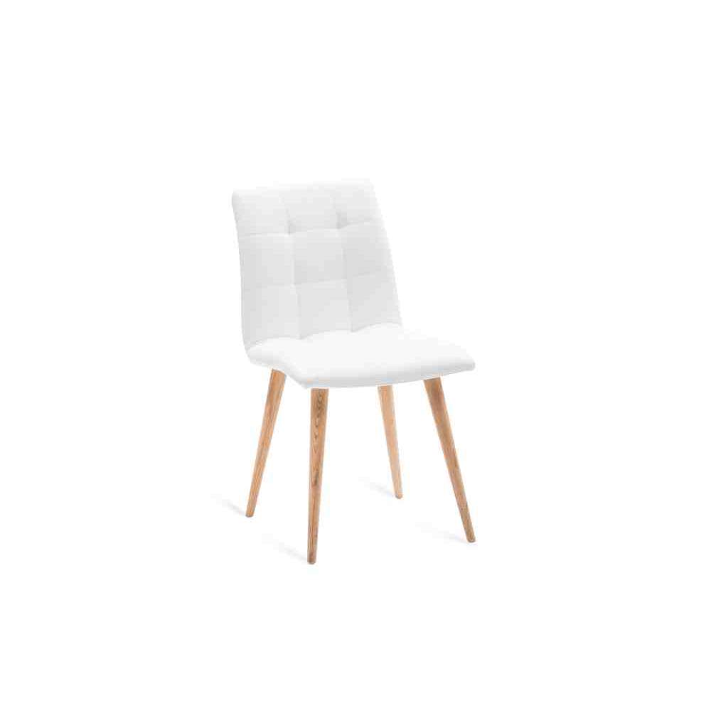 Finlandia to wyściełane krzesło z ekoskóry w kolorze białym / piaskowym / tytanowym ze strukturą z naturalnego dorsza. 201 lub dorsz z litego drewna orzecha amerykańskiego. 001.
