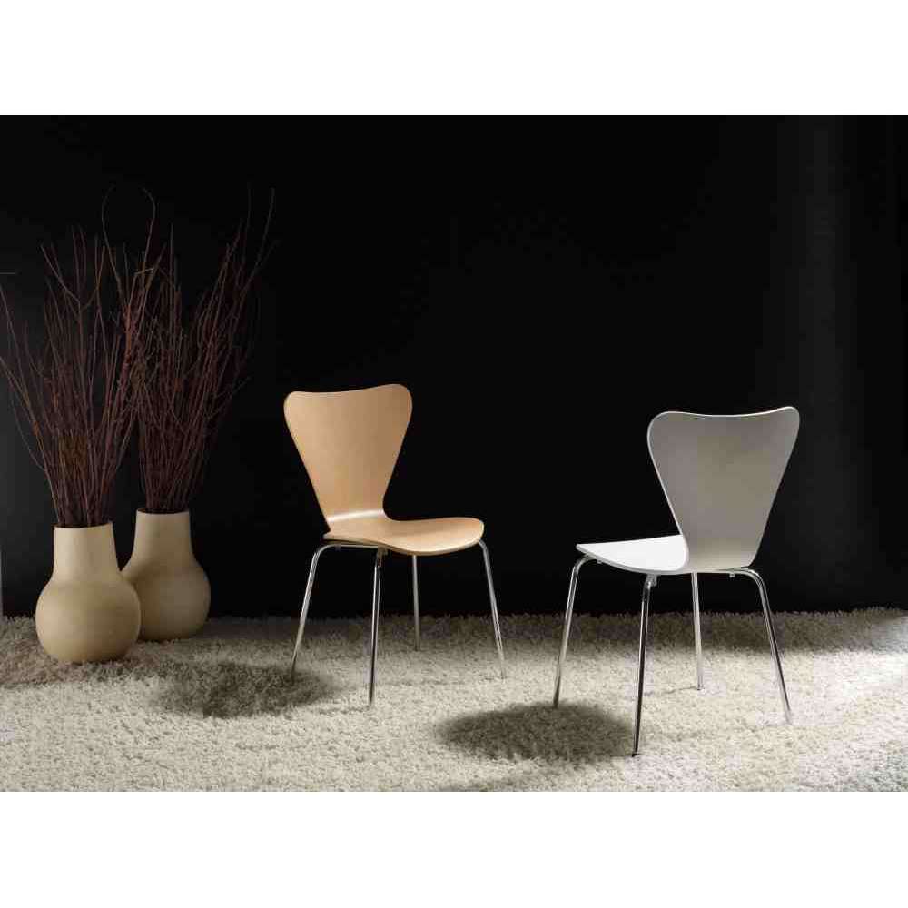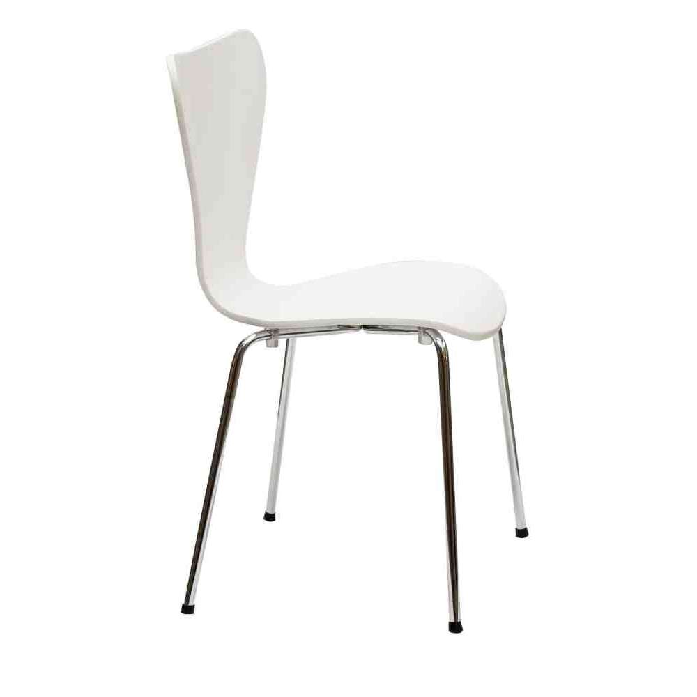 Triannon to krzesło, które można ustawiać jeden na drugim, lakierowane i odporne na zarysowania w kolorze białym lub w kolorze RAL i chromowanej metalowej konstrukcji.