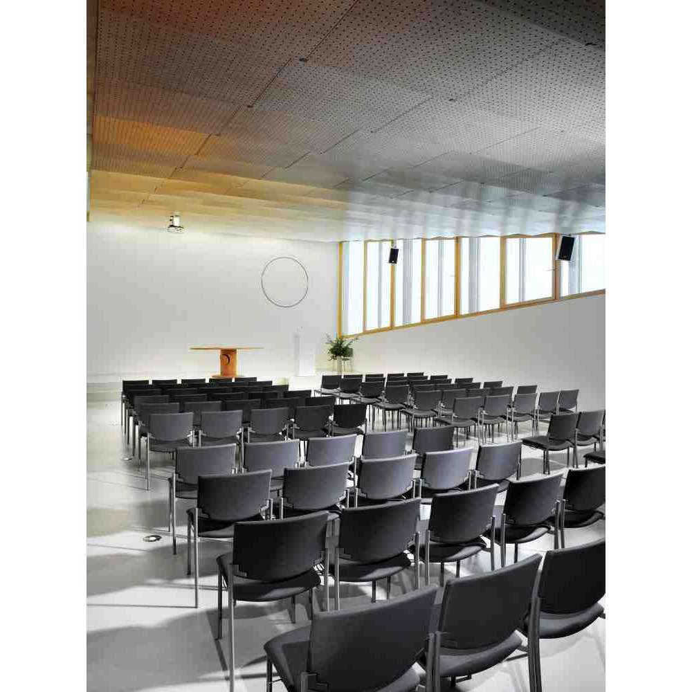 Seance Art 193 to krzesło konferencyjne, które można ustawiać jeden na drugim z tapicerowanym siedziskiem i oparciem obitym tkaniną, czarną skorupą z polipropylenu i stalową konstrukcją.