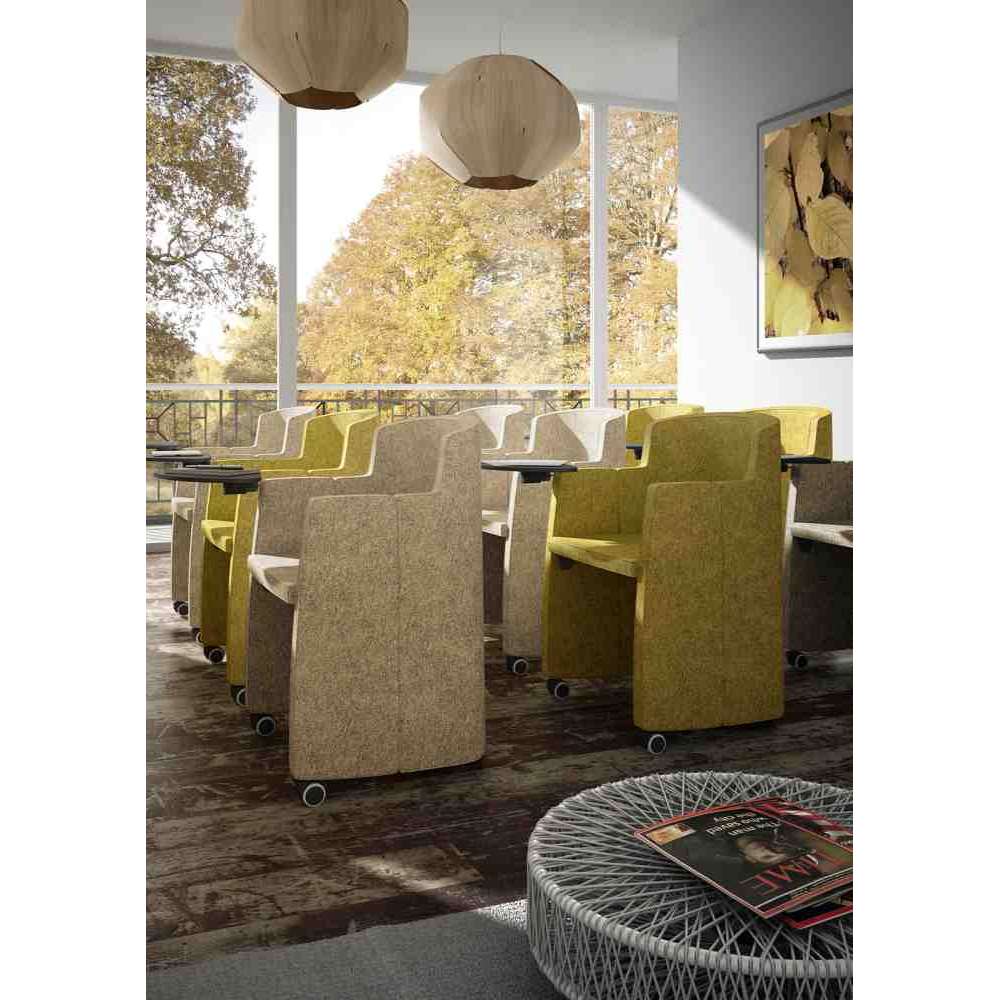 Przydatne krzesło do sal konferencyjnych lub poczekalni. Clac to składane krzesło łatwe do przechowywania po użyciu dzięki minimalistycznemu i geometrycznemu wzornictwu: jest to praktyczne rozwiązanie oszczędzające miejsce. Możliwość dostosowania za pomocą kółek i tabletu do pisania.