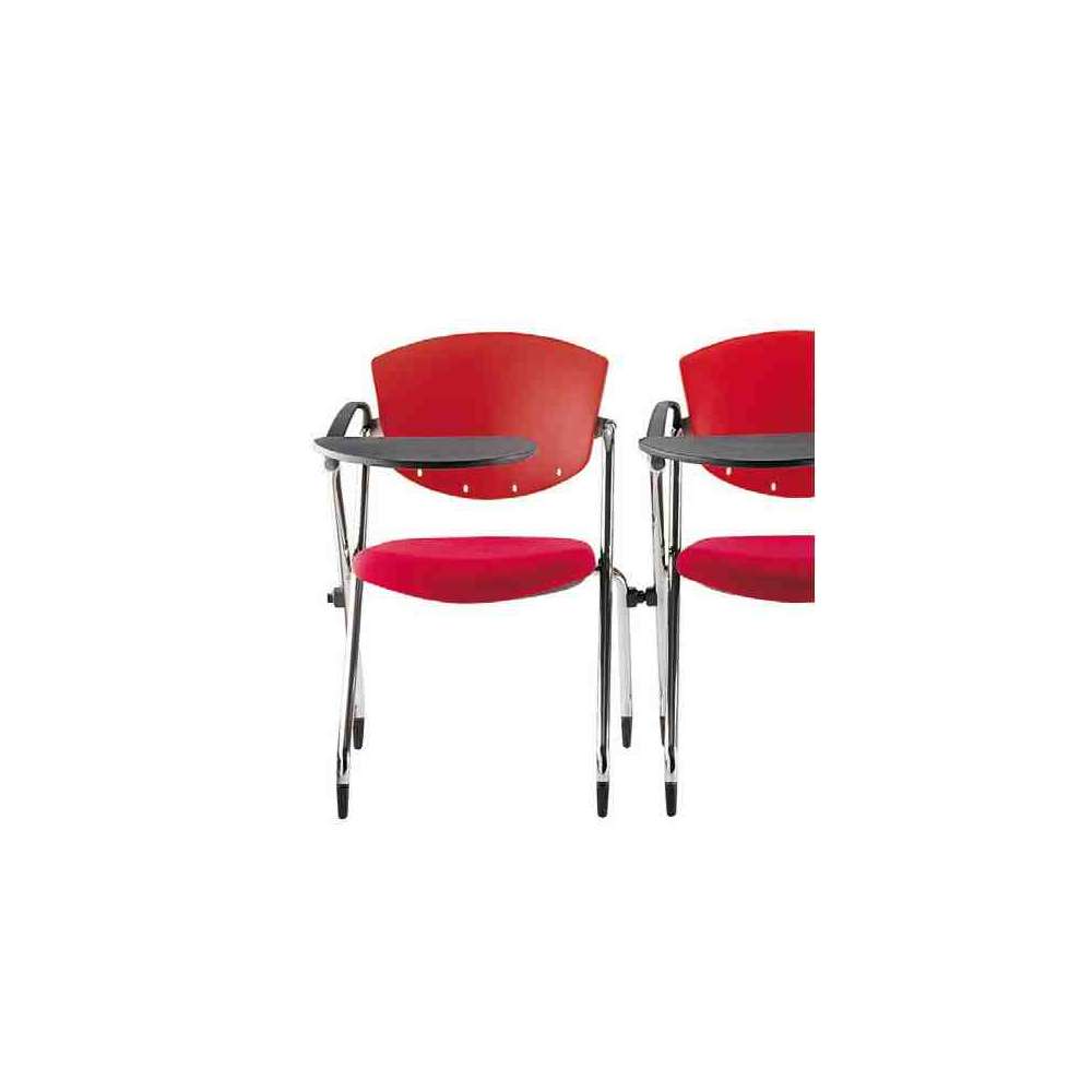 Krzesło dla gości, spotkań i konferencji z wykończeniem ramy w kolorze czarnym (N), chromowanym (CR) lub szarym aluminium (VA), z kółkami lub stopkami i wyposażone w składane siedzisko, które można zagnieżdżone z przodu. Dostępny z podłokietnikami lub bez, lub z dwoma rodzajami tabletów do pisania, EU (Europa) i USA (dużym, do laptopów). Wersje: PP z siedziskiem i oparciem z polipropylenu, IMPP z tapicerowanym siedziskiem i oparciem z polipropylenu, IM z tapicerowanym siedziskiem i oparciem, RETE z tapicerowanym siedziskiem i oparciem siatkowym, W z siedziskiem i oparciem z drewna bukowego, WIM z tapicerowanym siedziskiem i oparciem z drewna bukowego.