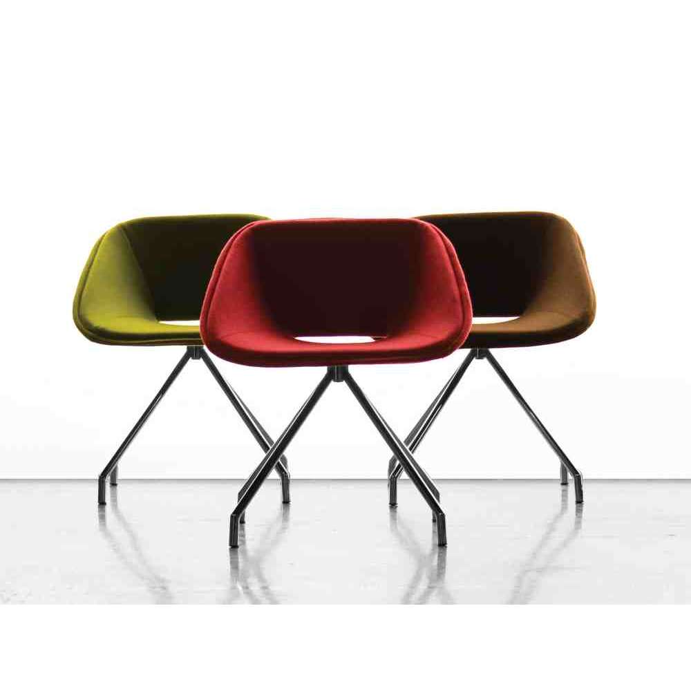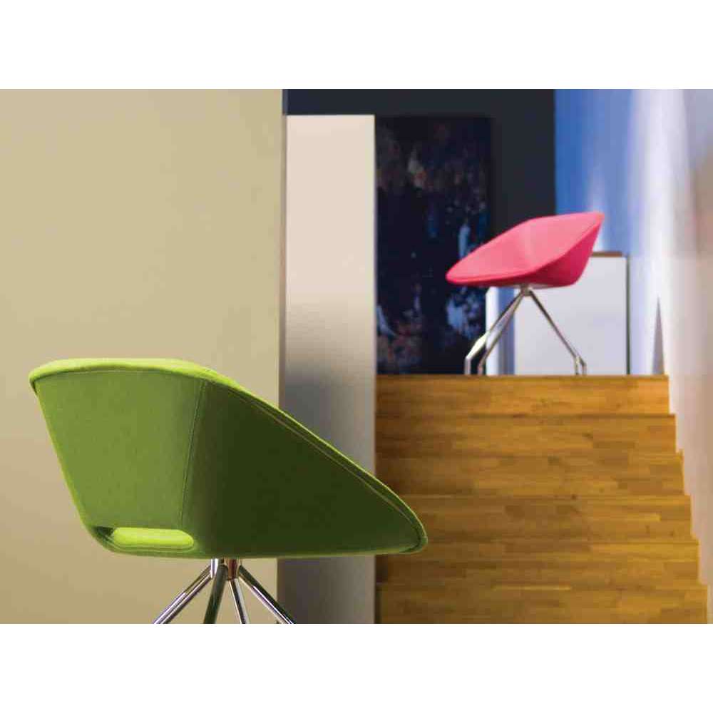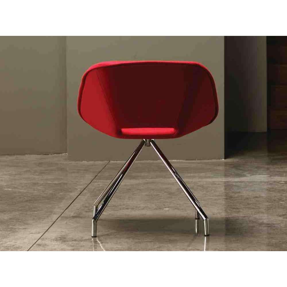 Krzesło obrotowe KIRMIZI, stworzone przez Alp Nuhoğlu dla B&T Design , ma profil boczny z geometryczną krawędzią i funkcjonalny design. Uzyskiwany jest poprzez wtryskiwanie pianki poliuretanowej do konstrukcji składającej się z metalowego szkieletu i stalowych sprężyn, a następnie powlekany skórą naturalną lub sztuczną lub tkaninami premium. Nogi dostępne są w wersji matowej lub chromowanej na wysoki połysk lub malowane proszkowo elektrostatycznie w różnych kolorach zgodnie z kodem RAL.