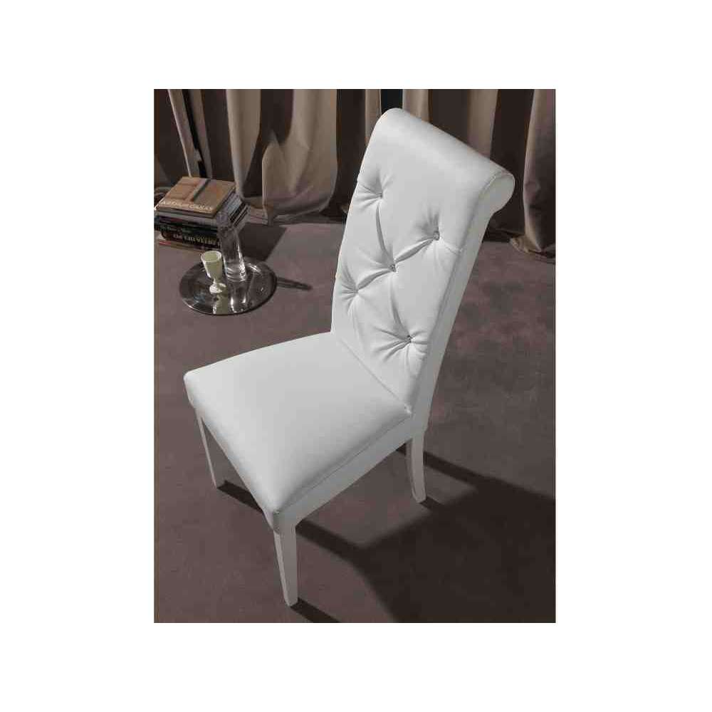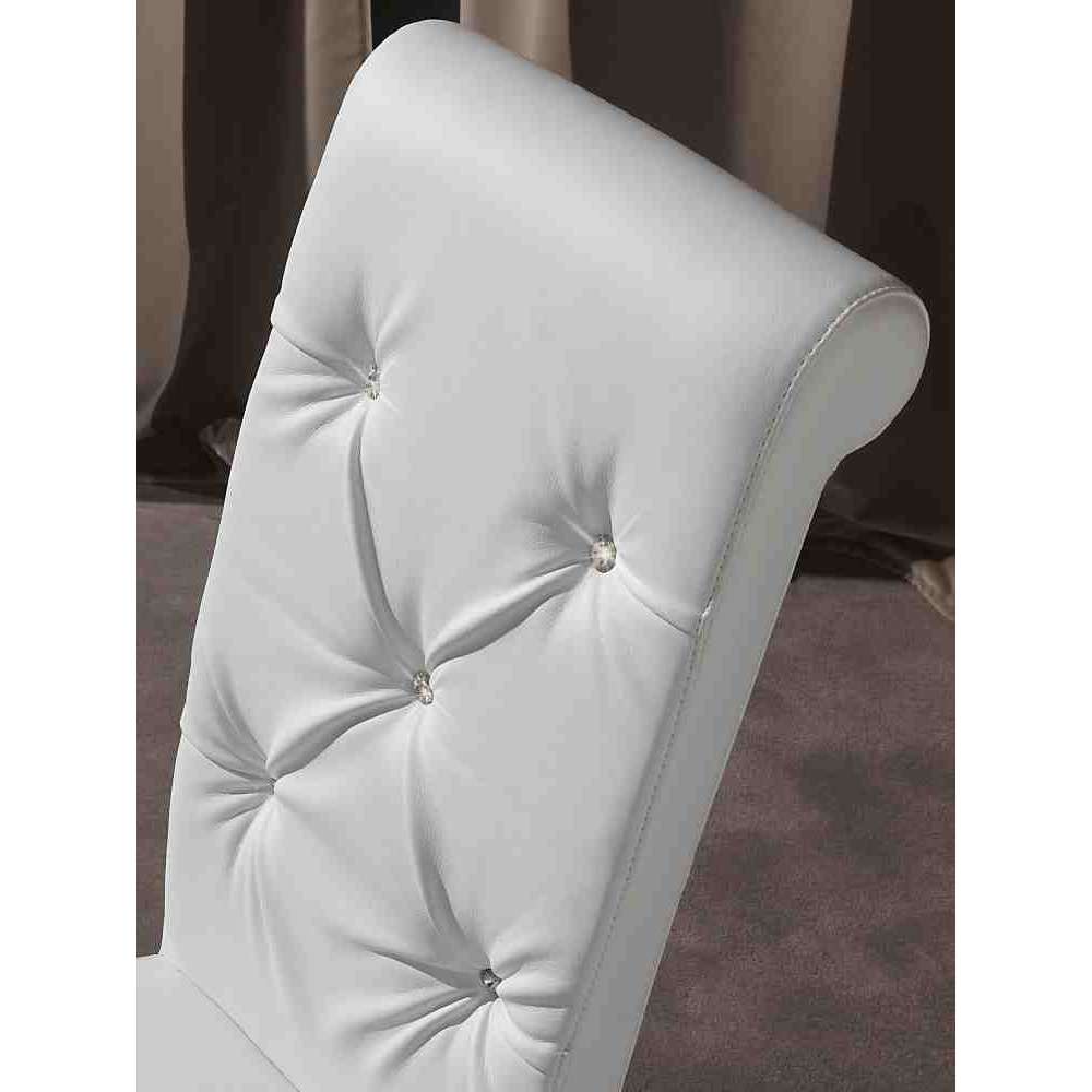 Billionaire Brill to wyściełane krzesło z miękkiej białej ekoskóry z brylantami w stylu swarovsky i lakierowaną strukturą w tym samym kolorze.