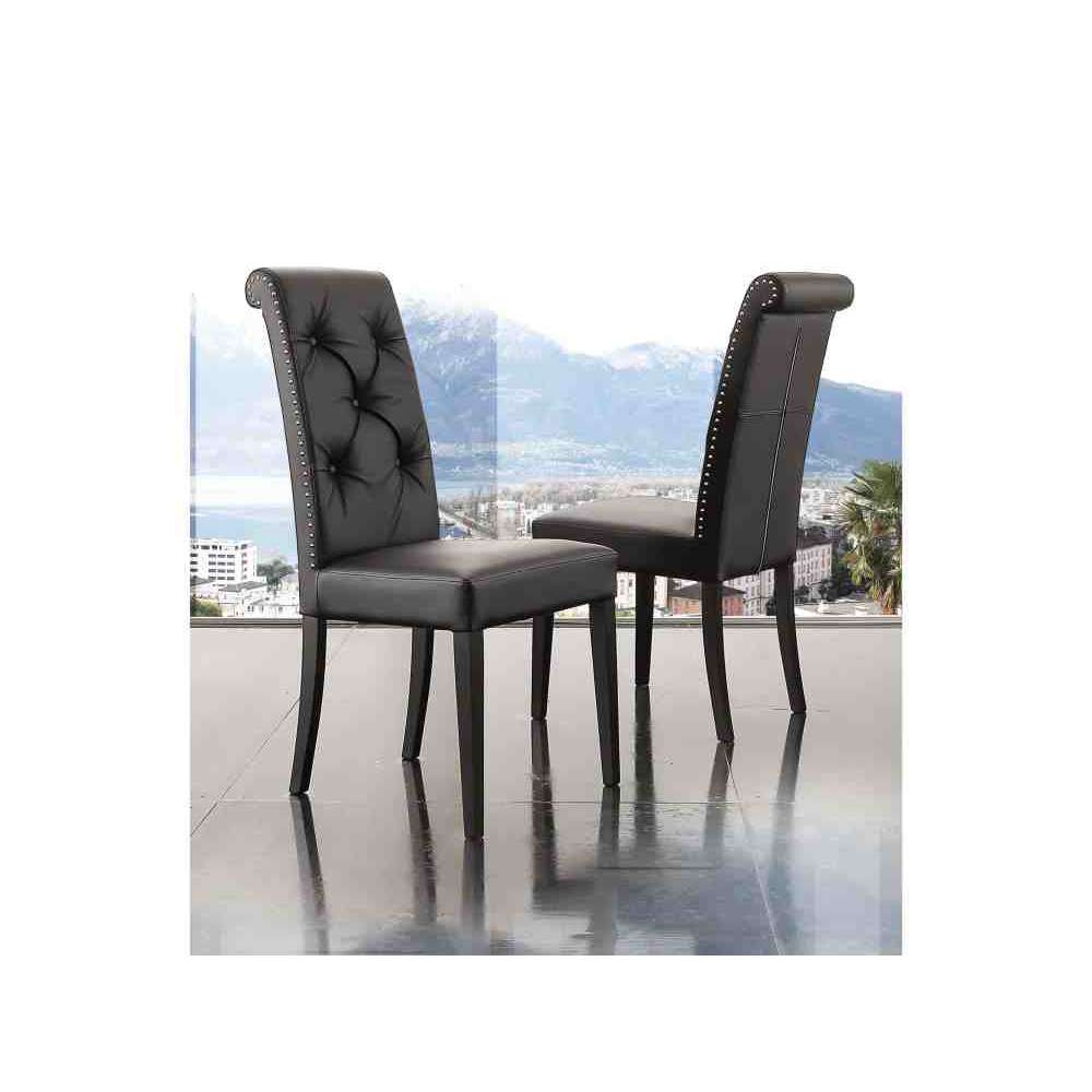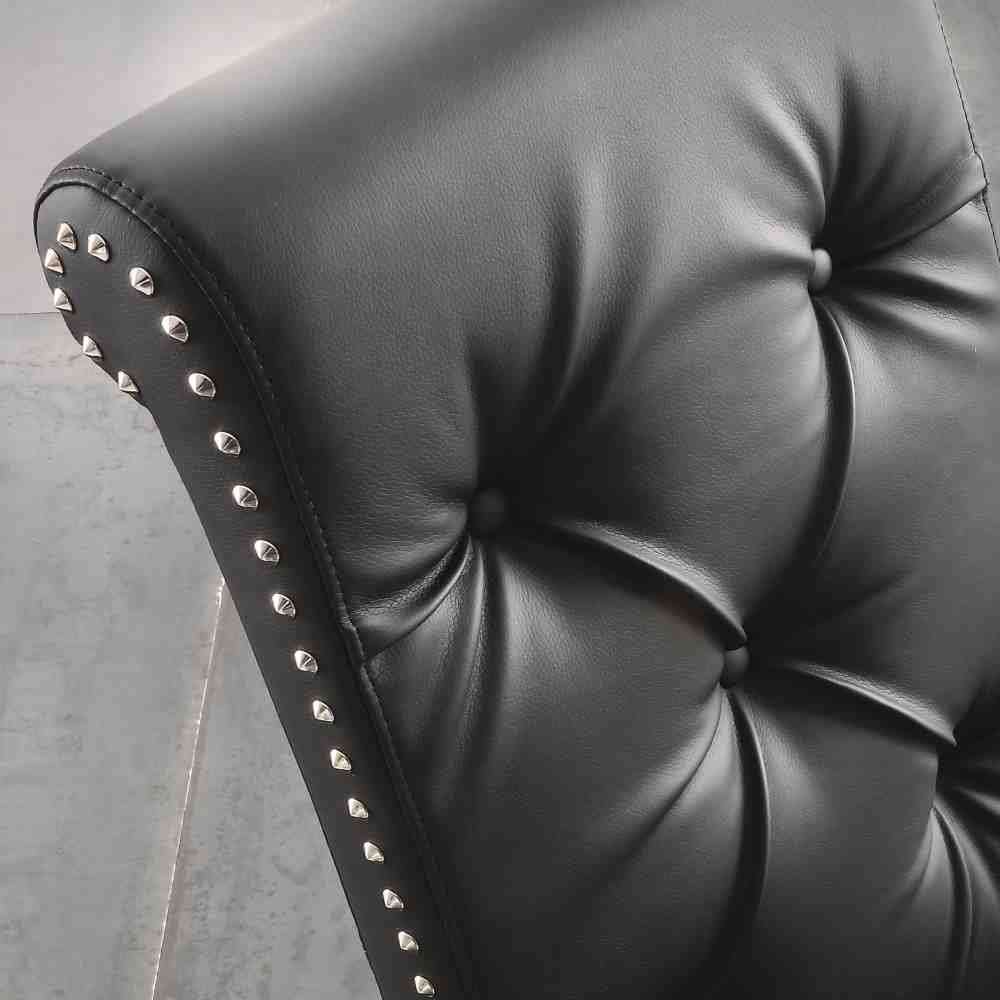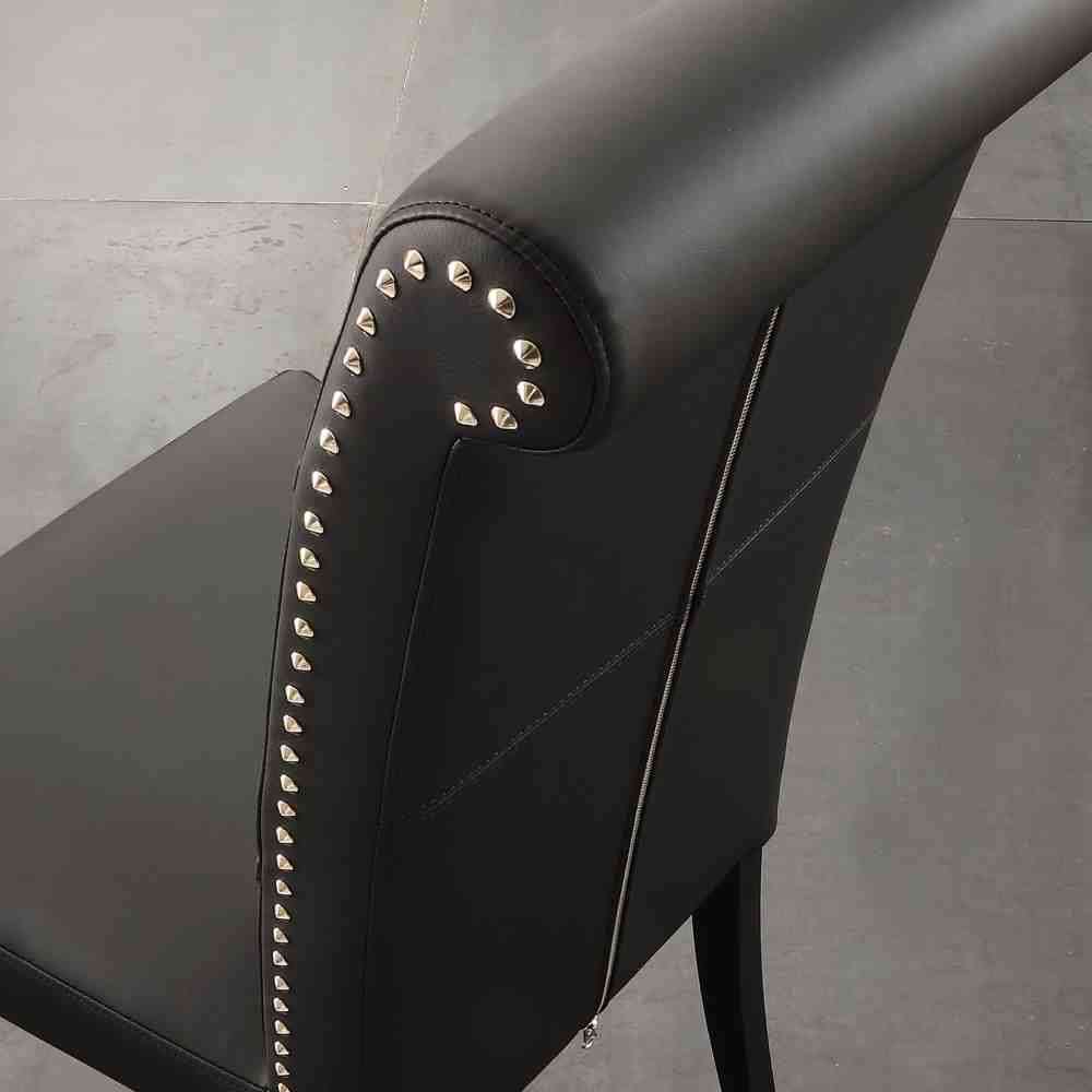 Billionaire Cool to wyściełane krzesło z czarnej miękkiej ekoskóry ze stalowymi ćwiekami i lakierowaną strukturą w tym samym kolorze.