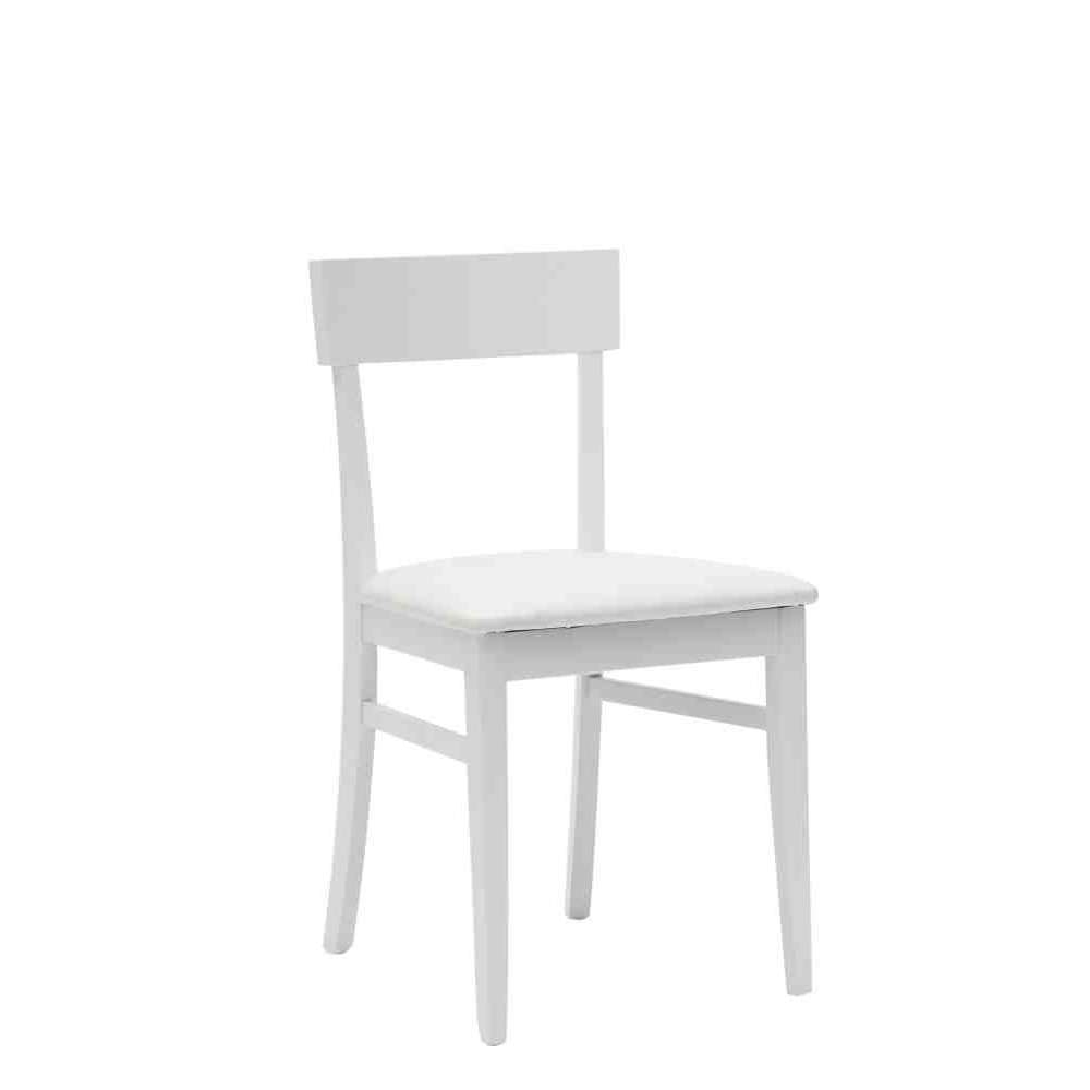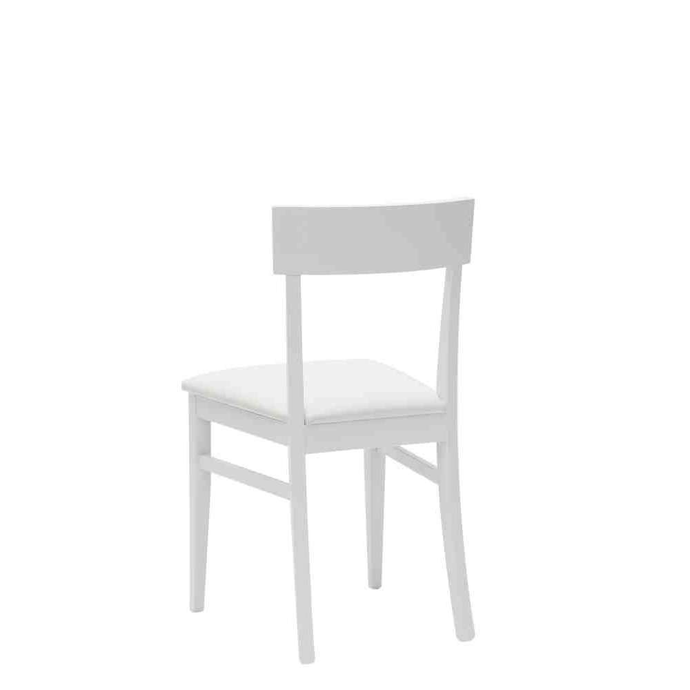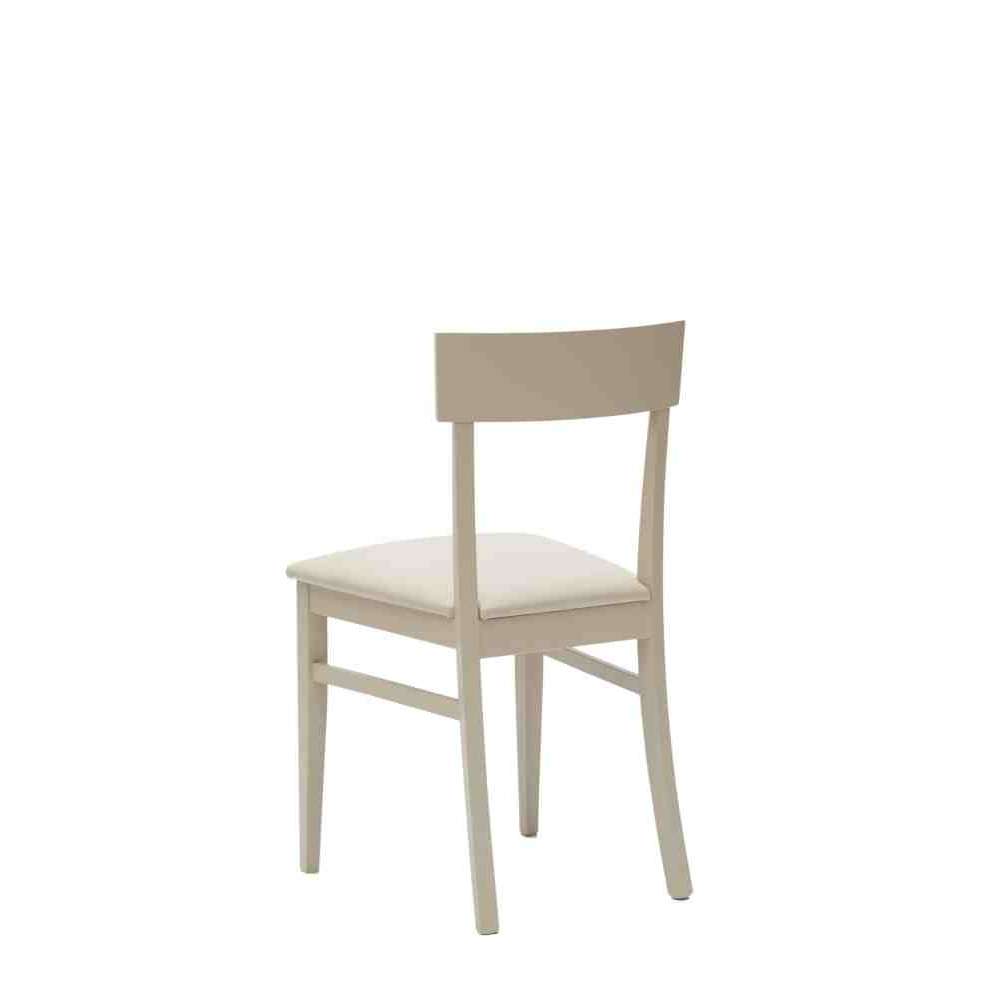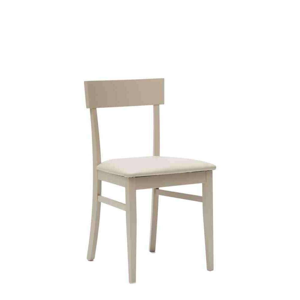 New Age to krzesło z białego/piaskowego/tytanowego lakierowanego drewna i wyściełane siedzisko z dopasowanej ekoskóry.