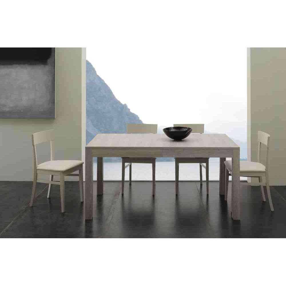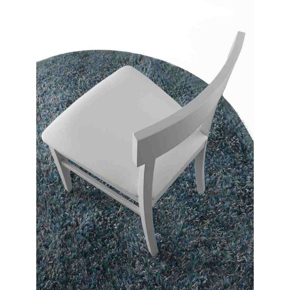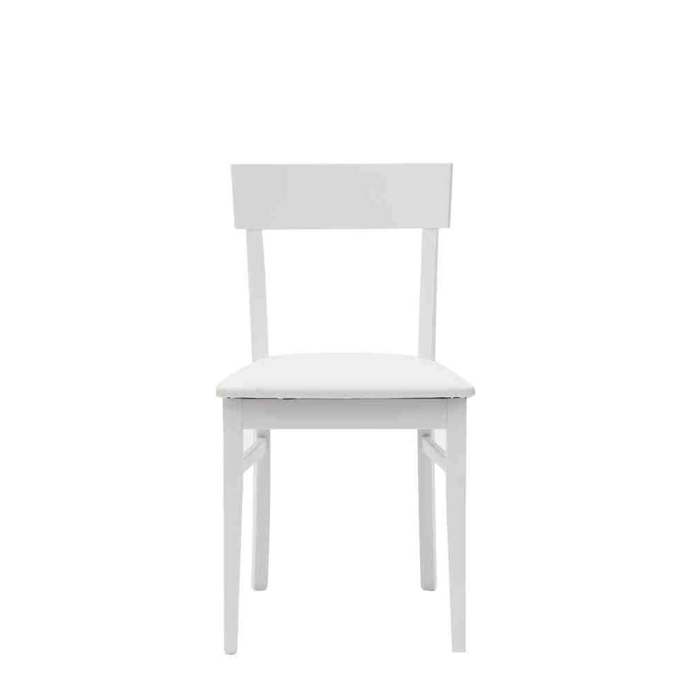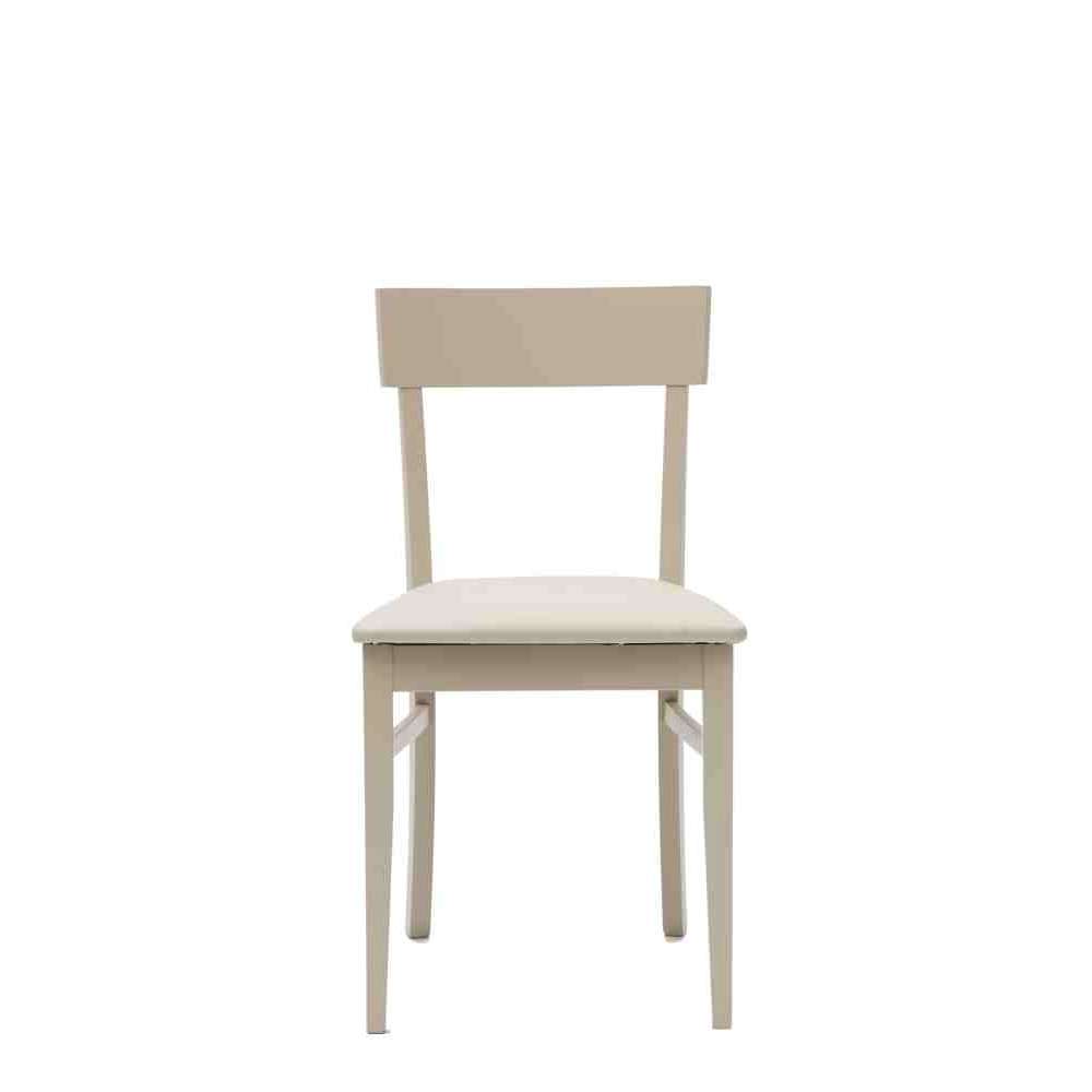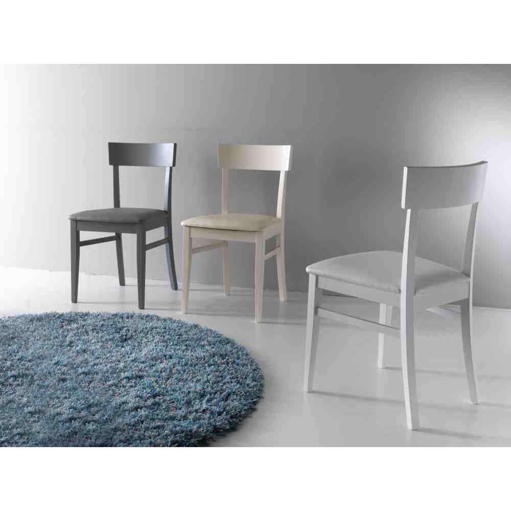 New Age to krzesło z białego/piaskowego/tytanowego lakierowanego drewna i wyściełane siedzisko z dopasowanej ekoskóry.