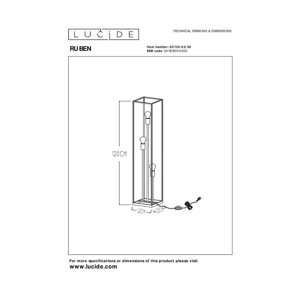 Lampa podłogowa Lucide Ruben 00724/03/30