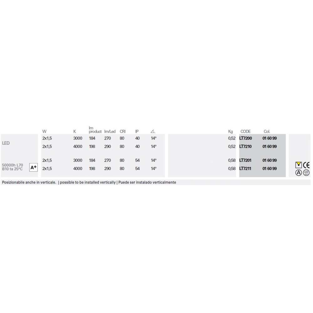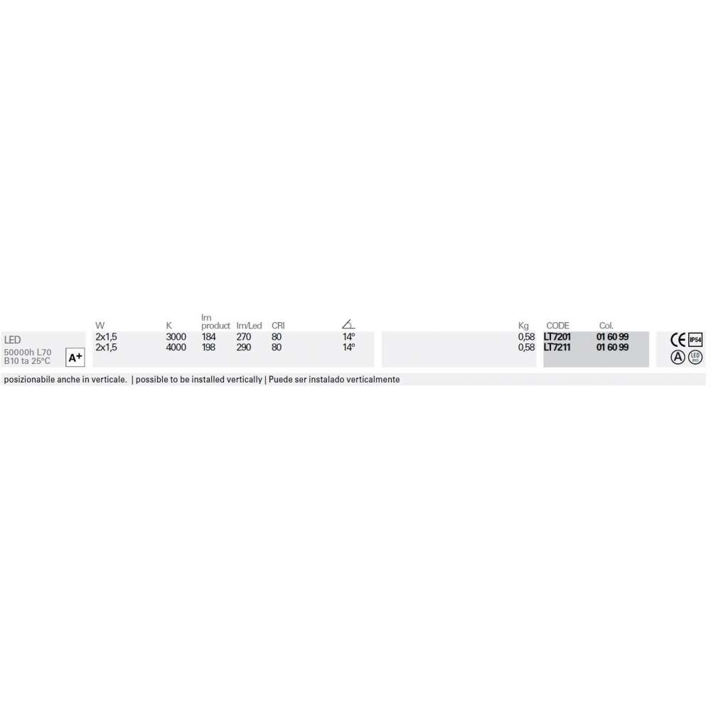 Jedno- lub dwuemisyjne oprawy naścienne do akcentującego oświetlenia płaszczyzn lub kątów. Zespół optyczny w komplecie z profesjonalnym zasilaczem LED i elektronicznym. Dostępny w kącie wewnętrznym 90°, kącie zewnętrznym 270° lub !at. Korpus z malowanego metalu. Stopień ochrony IP40 i IP54.