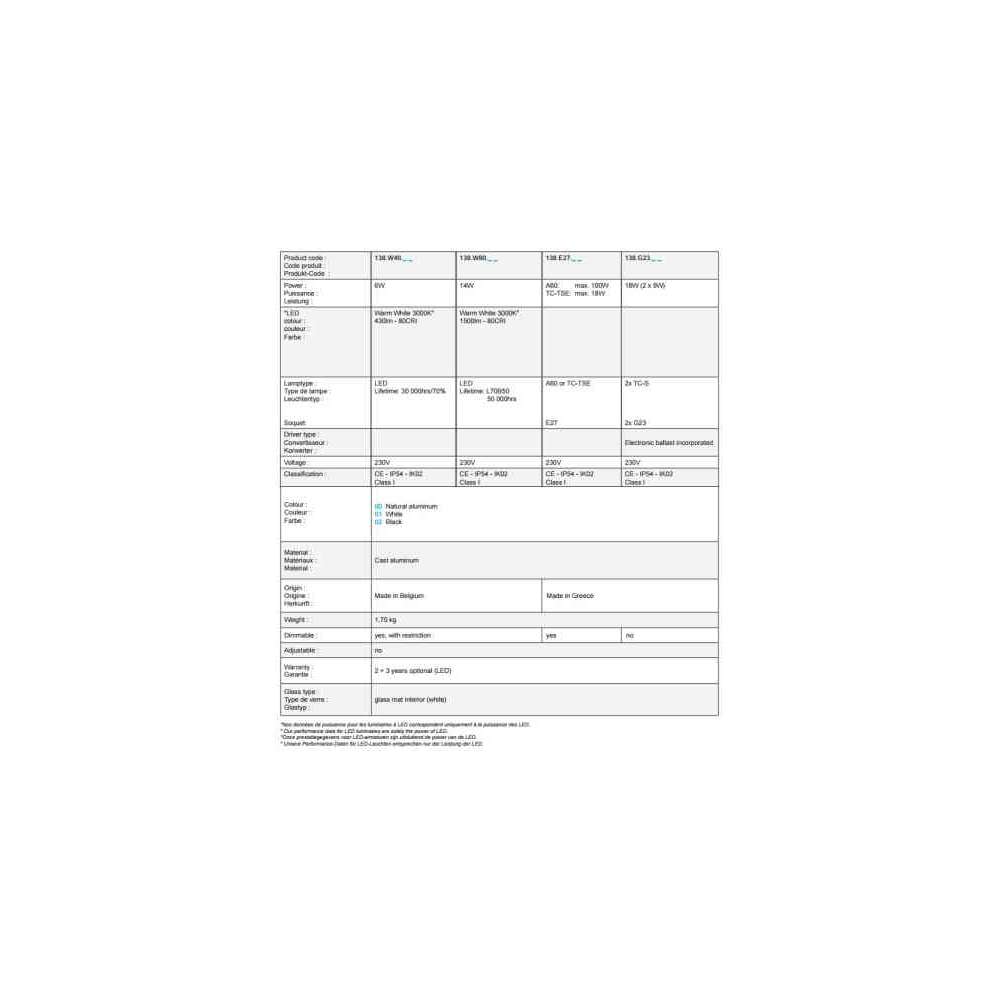 Oprawa ścienna lub sufitowa wykonana z aluminium. Ta niezawodna i ekonomiczna oprawa znajduje zastosowanie w wielu projektach architektonicznych wewnątrz i na zewnątrz. LOTUS jest dostępny z modułem LED w zestawie lub z oprawą E27. Instalowana samodzielnie lub w grupach oprawa ta jest atrakcyjnym rozwiązaniem o wielu zastosowaniach.