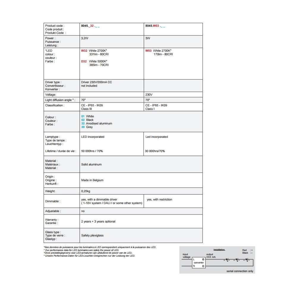 KOBA 1 | anodowane Aluminium/biały/czarny/Szary Wodoodporny IP65 kubiczna oprawa ścienna LED OPIS: Korpus z litego aluminium Śruby ze stali nierdzewnej Stopień ochrony IP65 - IK09 Klasa 1 (230V ) lub Klasa 3 (350mA) Bezpieczna pleksi Wbudowana dioda LED 3,2W 350mA lub 3W 230V Klasa energetyczna EC: A+ (350mA) lub A (230V) AKCESORIA: Zasilacz LED 350mA CC (nie dla modelu 230V) (brak w zestawie) Obiektyw 10° - kod: AC.8041.32 LED: D32 3,2W 350mA - 5000K - 70° W03 3W 230V - 2700K - 70° W32 3,2W 350mA - 2700K - 70° KOLOR: 01 Biały 02 Czarny 32 Aluminium anodowane 39 Szary 48 Ciemnoszary (RAL 7016 Structured) Kinkiet z litego aluminium ze światłem skierowanym w dół i w górę. Ten wysokiej jakości trwały produkt wykorzystuje najnowszą technologię LED, łączy w sobie wysoką wydajność. Instalowana pojedynczo lub w grupach, idealnie nadaje się do oświetlania elewacji, kolumn czy pilastrów.Odbiorca: :