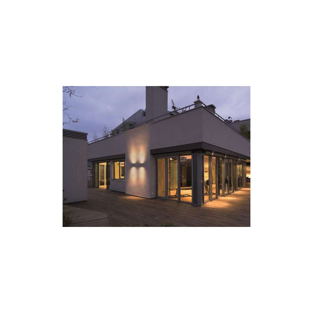 Kinkiet z litego aluminium ze światłem skierowanym w dół i w górę. Ten wysokiej jakości trwały produkt wykorzystuje najnowszą technologię LED, łączy w sobie wysoką wydajność. Instalowana pojedynczo lub w grupach, idealnie nadaje się do oświetlania elewacji, kolumn czy pilastrów.
