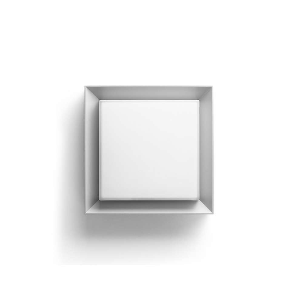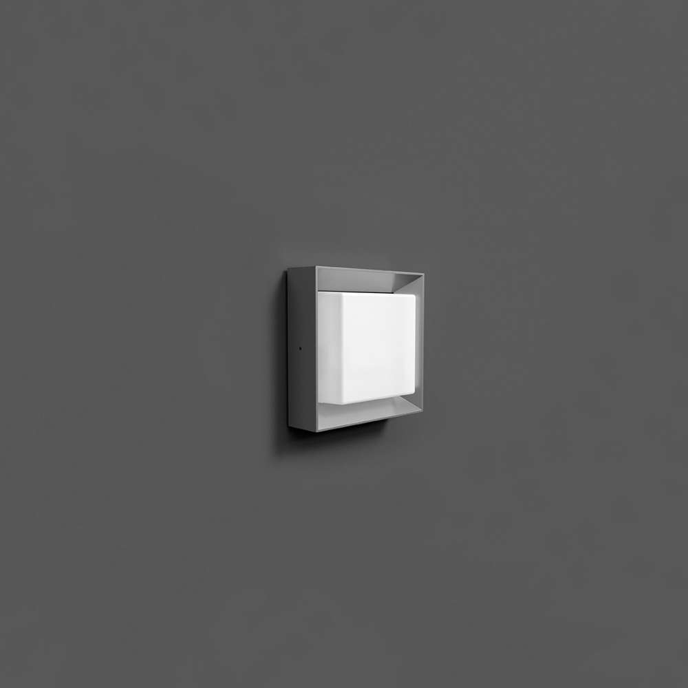 Kwadratowa oprawa natynkowa o wymiarach 270x270mm do montażu na zewnątrz na fasadzie/ścianie. Korpus z odlewanego ciśnieniowo aluminium bez miedzi, chromianowany fosforanem i malowany proszkowo na bazie poliestru, klosz z trawionego kwasem szkła hartowanego pomalowany na biało wewnątrz, formowana uszczelka silikonowa i śruby ze stali nierdzewnej. Wbudowany sterownik LED 220-240V 50-60Hz, z 48 x średniej mocy SAMSUNG 2835 LED. Stopień ochrony IP65.