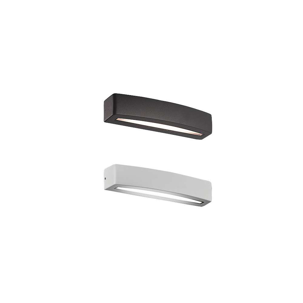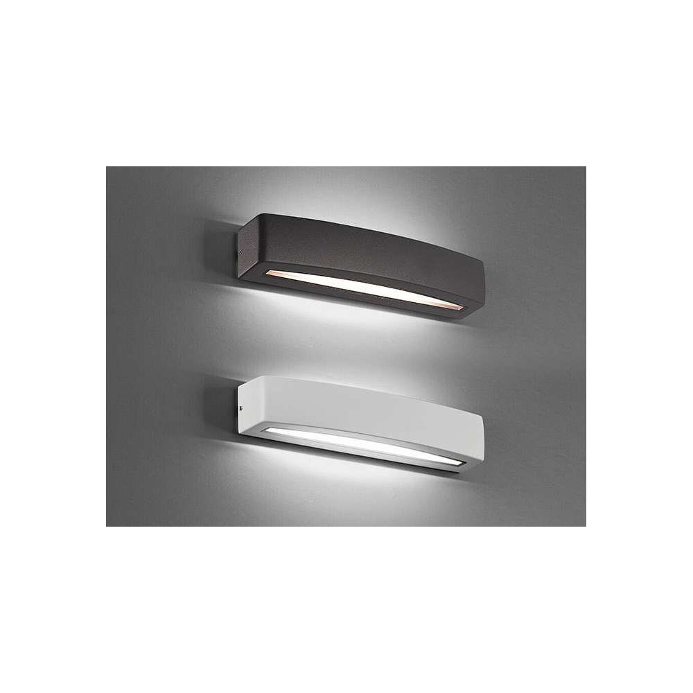 RIO by Terzo Light to malowana aluminiowa zewnętrzna lampa ścienna LED z przezroczystym szkłem bezpiecznym. LED 12W (2x 6W) 120° - 3000K - 742lm - CRI>80 W zestawie sterownik 220-240V Stopień ochrony: IP54 Klasa 1 Klasa energetyczna EC: A+Odbiorca: :