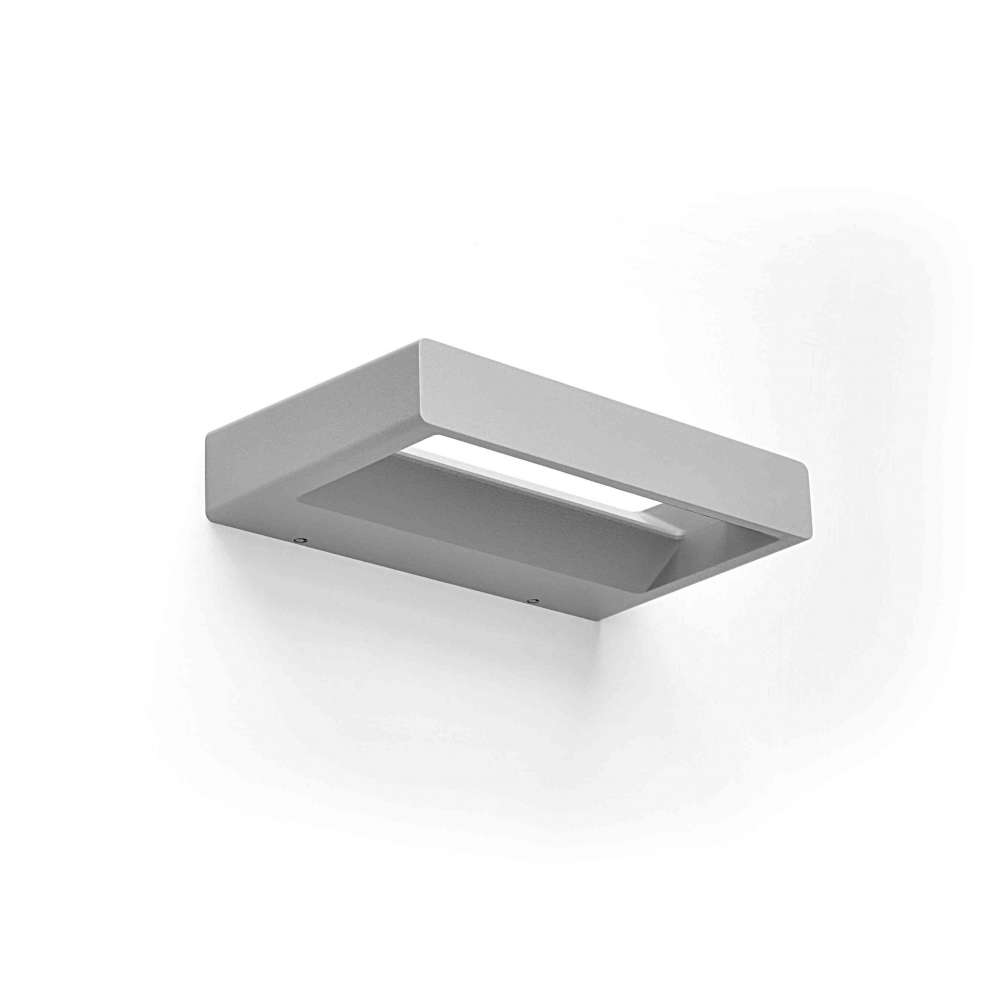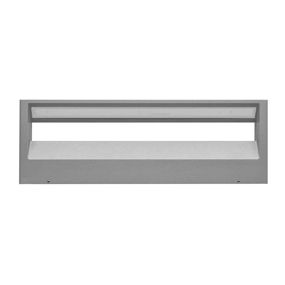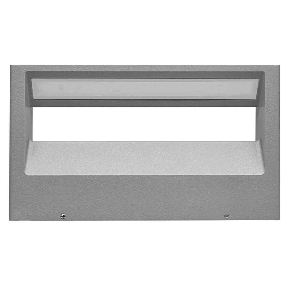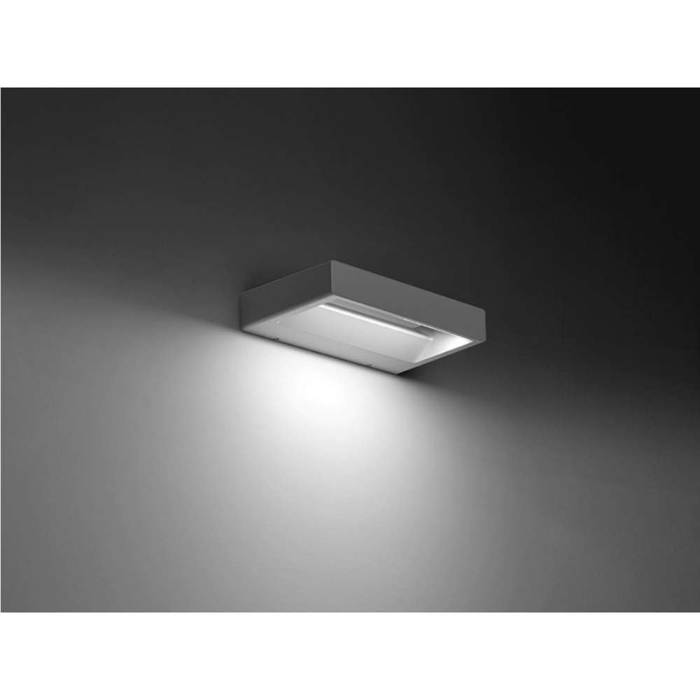 Aplikacja w kształcie prostokąta do montażu na zewnątrz na elewacji/ścianie, z pojedynczym (1 strona) emisją światła. Korpus z odlewanego ciśnieniowo aluminium bez miedzi, fosforanowany i malowany proszkowo poliestrem, hartowane, matowe szkło bezpieczne, formowana uszczelka silikonowa i śruby ze stali nierdzewnej. Wbudowany sterownik LED 220-240V 50-60Hz, z 9 diodami CREE XH-G średniej mocy. Stopień ochrony IP65.