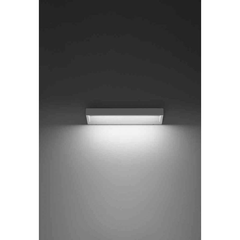 Aplikacja w kształcie prostokąta do montażu na zewnątrz na fasadzie/ścianie z pojedynczym (1 strona) emisją światła. Korpus z odlewanego ciśnieniowo aluminium bez miedzi, fosforanowany i malowany proszkowo poliestrem, hartowane, matowe szkło bezpieczne, formowana uszczelka silikonowa i śruby ze stali nierdzewnej. Wbudowany sterownik LED 220-240V 50-60Hz, z 21 diodami CREE XH-G średniej mocy. Stopień ochrony IP65.