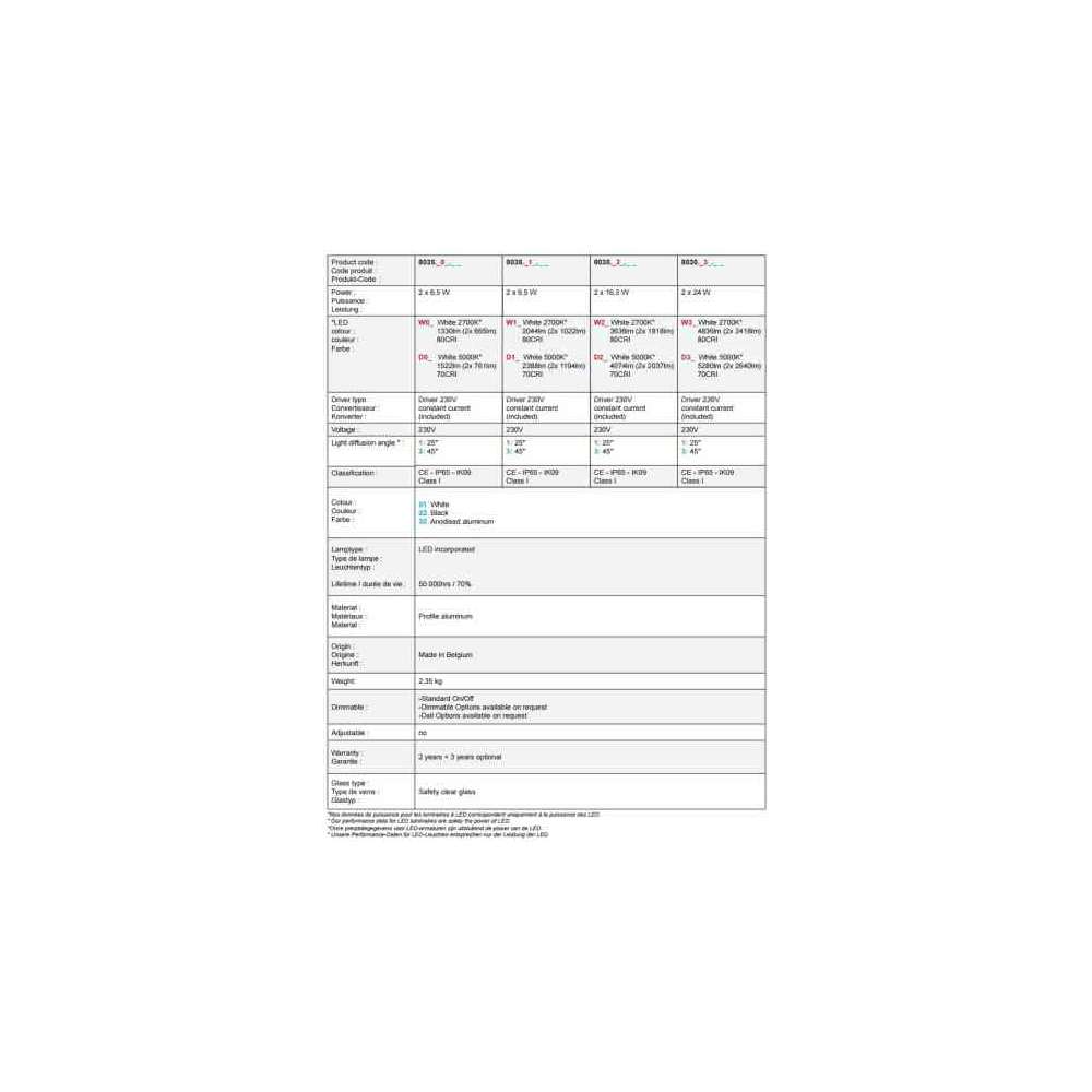 RECTO 2 | Kinkiet sześcienny/prostokątny anodowane aluminium/czarno-biały wodoodporny IP65 wysokiej mocy oprawa LED góra-dół z podwójną lampą Ze względu na swoje wymiary ta lampa LED skierowana w górę i w dół jest idealna do oświetlania kolumn, pilastrów lub ścian do użytku prywatnego lub projekt publiczny. Wykonany z aluminium, ten trwały produkt wysokiej jakości zachwyca swoim designem, łączy w sobie wysoką wydajność, długą żywotność i jasność porównywalną z żarówkami halogenowymi. Instalowana pojedynczo lub w grupach oprawa stanowi atrakcyjne rozwiązanie dla wielu instalacji oświetlenia zewnętrznego. OPIS: Korpus wykonany z aluminium Śruby ze stali nierdzewnej Stopień ochrony IP65 - IK09 Bezpieczeństwo wyjątkowo przezroczyste szkło Zasilacz LED 230V i dioda LED wbudowana Klasa energetyczna EC: A+ LED: D 5000K W 2700K MOC: 0) 2 x 6,5W 1) 2 x 9,5W 2) 2 x 16,5W KĄT: 1) 20° 2) 40° KOLOR: 01 Biały 02 Czarny 32 Anodowane aluminiumOdbiorca: :