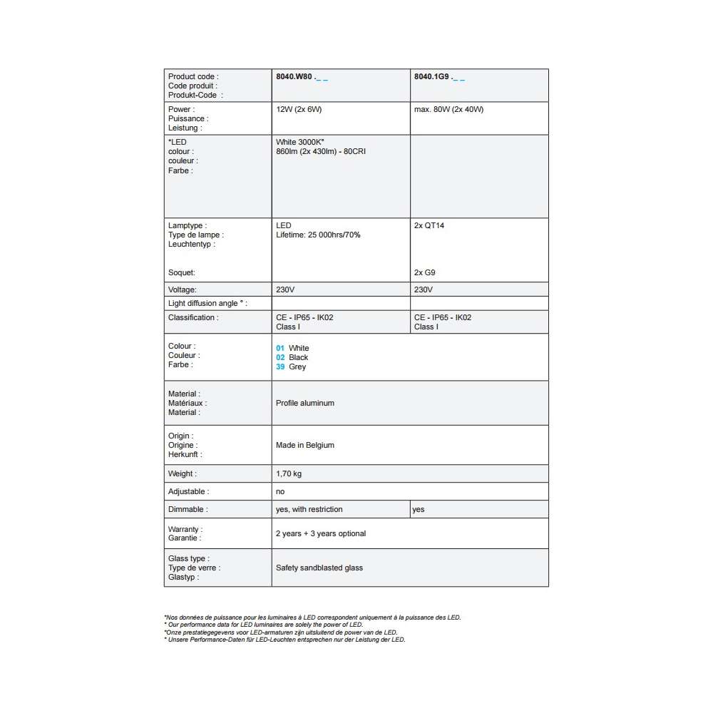 Kinkiet z profilowanego aluminium ze światłem skierowanym w dół i w górę. Ten trwały produkt zachwyca nowoczesną formą i jest dostępny z wbudowanymi dwoma modułami LED lub 2 żarówkami halogenowymi. Instalowana pojedynczo lub w grupach, oprawa ta jest atrakcyjnym rozwiązaniem dla wielu instalacji oświetlenia zewnętrznego.