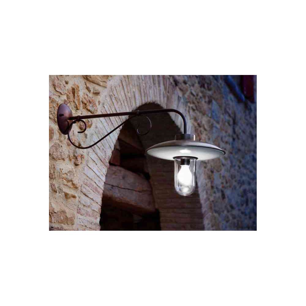 Seria kinkietów i lamp ulicznych na słup zewnętrzny z kloszem z postarzanej miedzi, odbłyśnikiem aluminiowym emaliowanym na biało, hartowane przezroczyste szkło i postarzane mosiężne ramię. Lampa ścienna dostępna jest w wersji ze szkłem ochronnym lub bez. Lampa uliczna powinna być zintegrowana ze słupami i/lub piwnicami, które należy zamawiać osobno. To zestaw o znakomitym efekcie, który staje się wyrazistym wyposażeniem ogrodów, alejek, remontów.Odbiorca: :