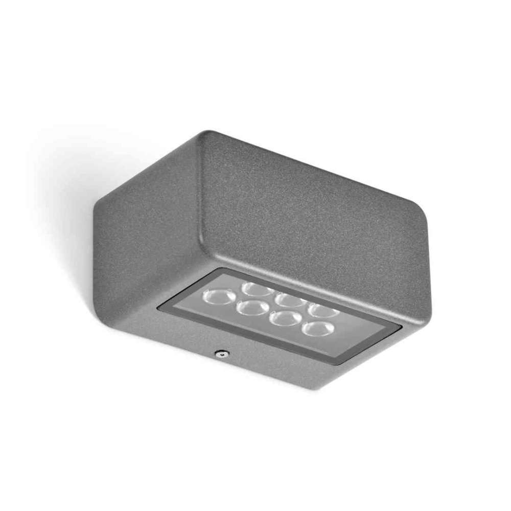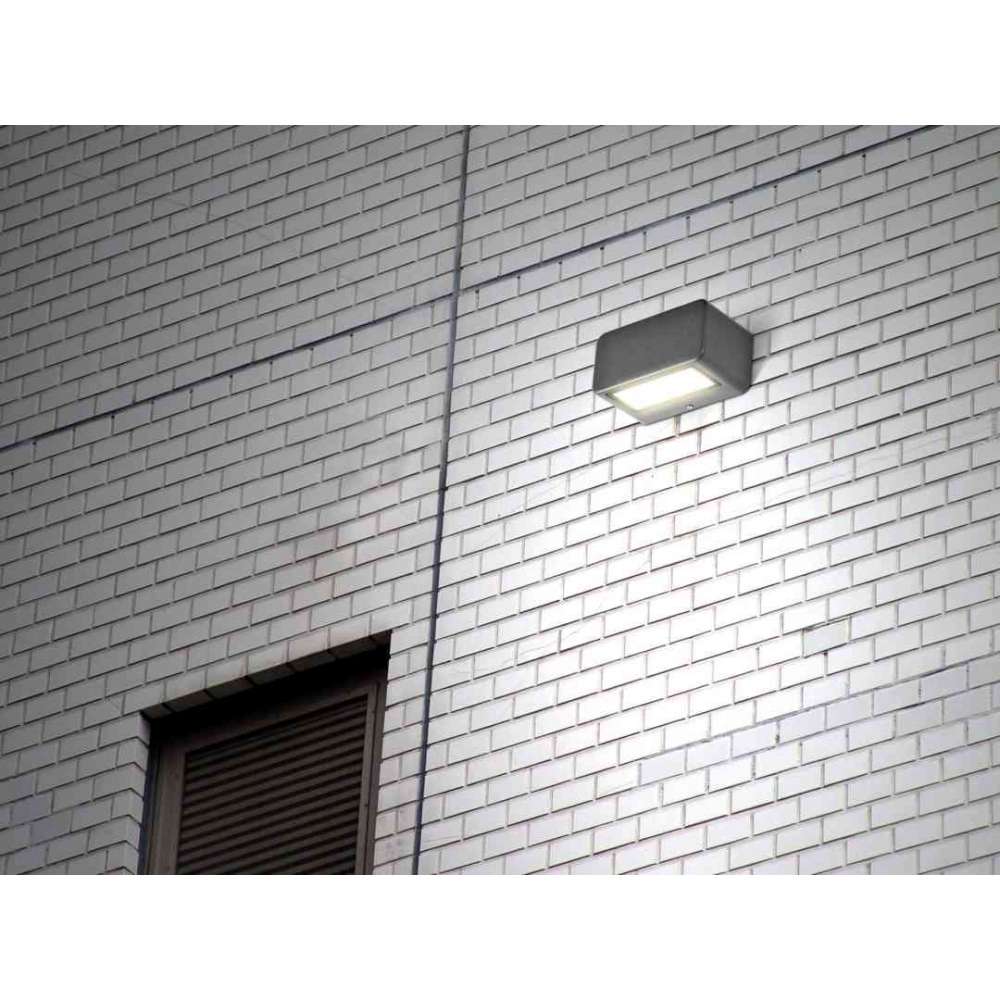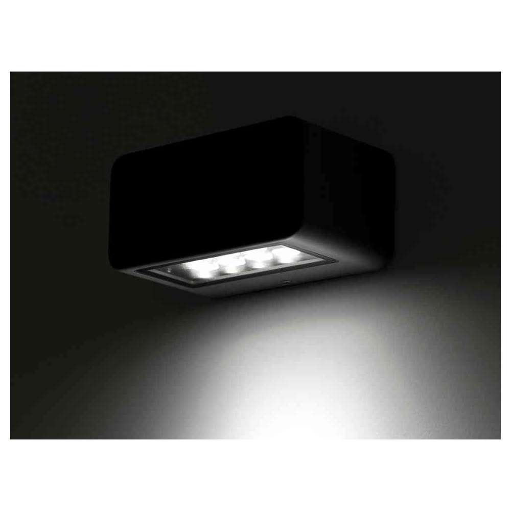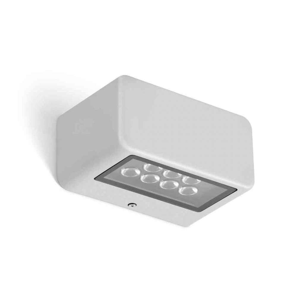 Naścienna prostokątna oprawa LED IP65 z efektami świetlnymi w górę iw dół. Korpus z odlewanego ciśnieniowo aluminium EN AB 44100 z wykończeniem poliestrowym malowanym proszkowo. Szkło hartowane o grubości 3 mm.