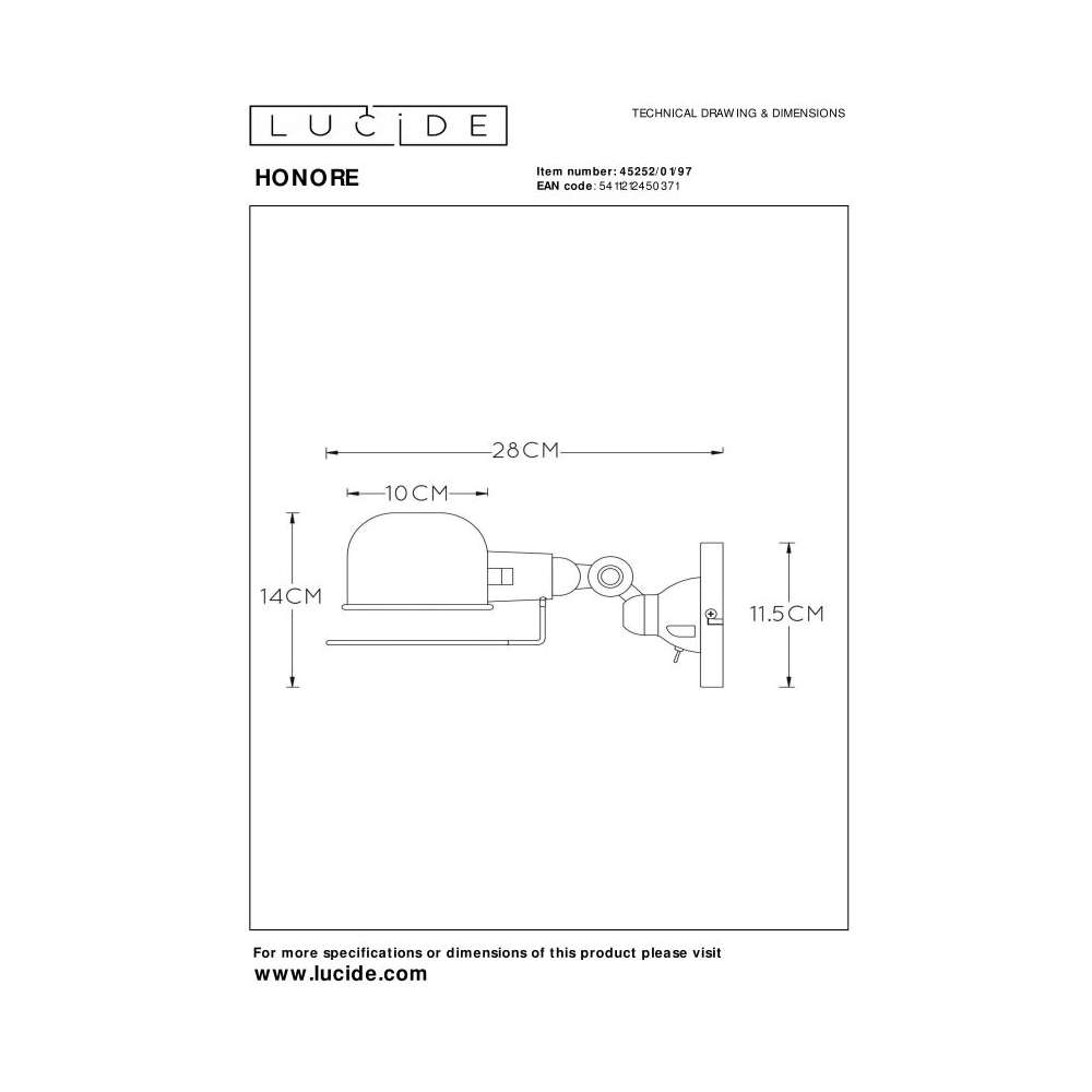 Lampa ścienna Lucide Honore 45252/01/97