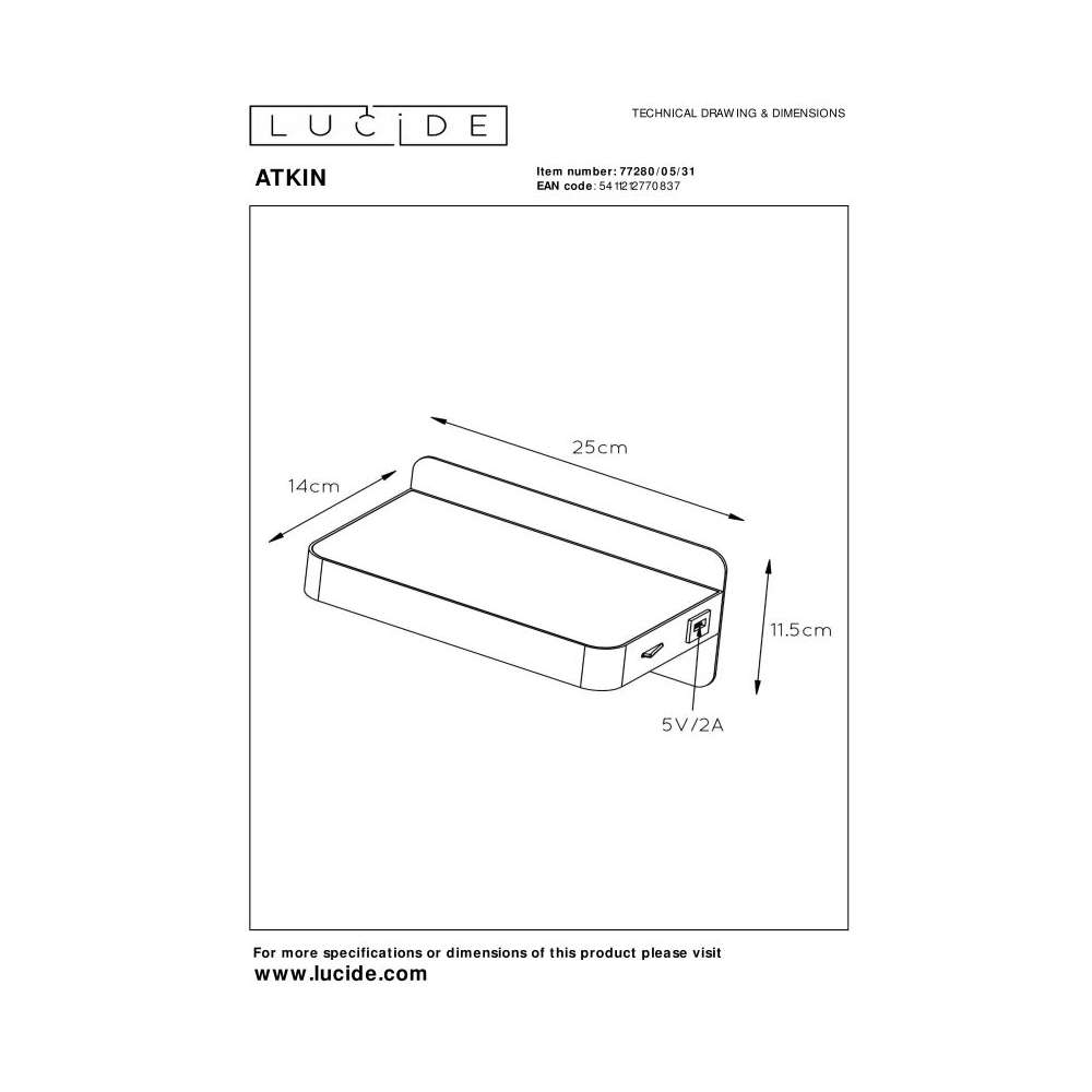 Lampa ścienna Lucide Atkin 77280/05/31