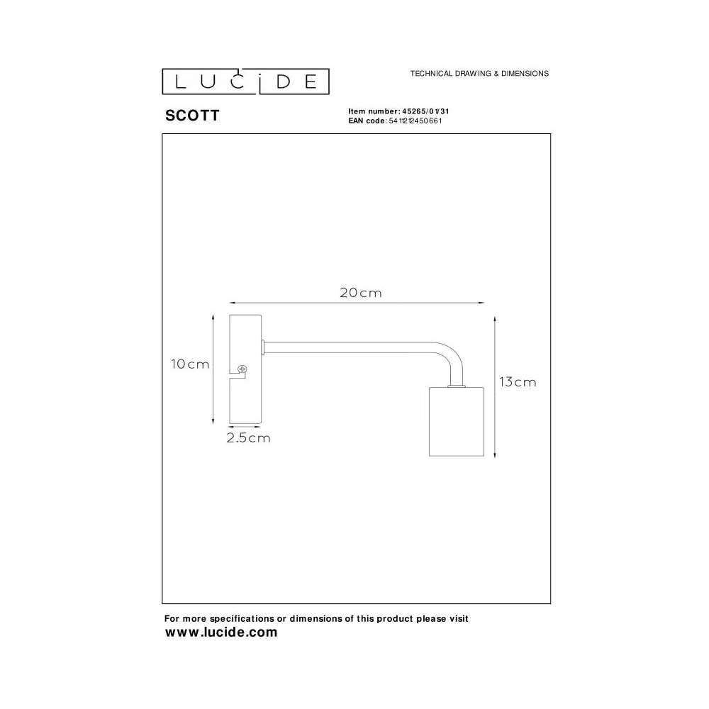 Lampa ścienna Lucide Scott 45265/01/31