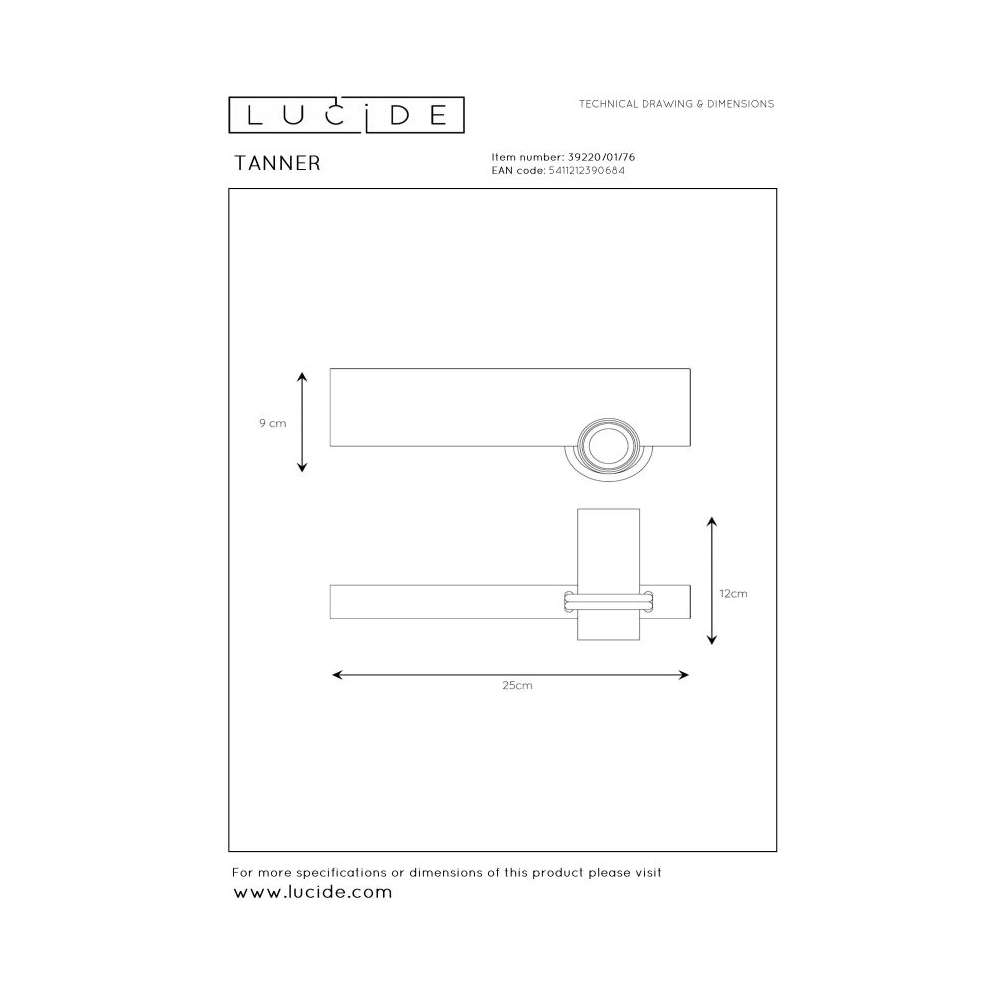 Lampa ścienna Lucide Tanner 39220/01/76