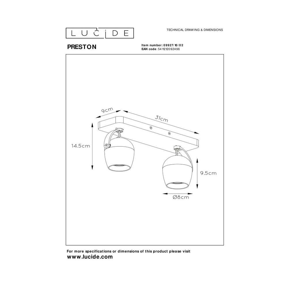Lampa ścienna Lucide Preston 09927/10/02