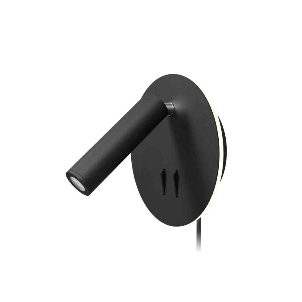 Średnica płytki ściennej 14 cm, średnica plamki 2,8 cm, Podświetlenie 6W LED, Reflektor 3 W LED, Dwa włączniki, Kabel zasilający w zestawie, Czarny