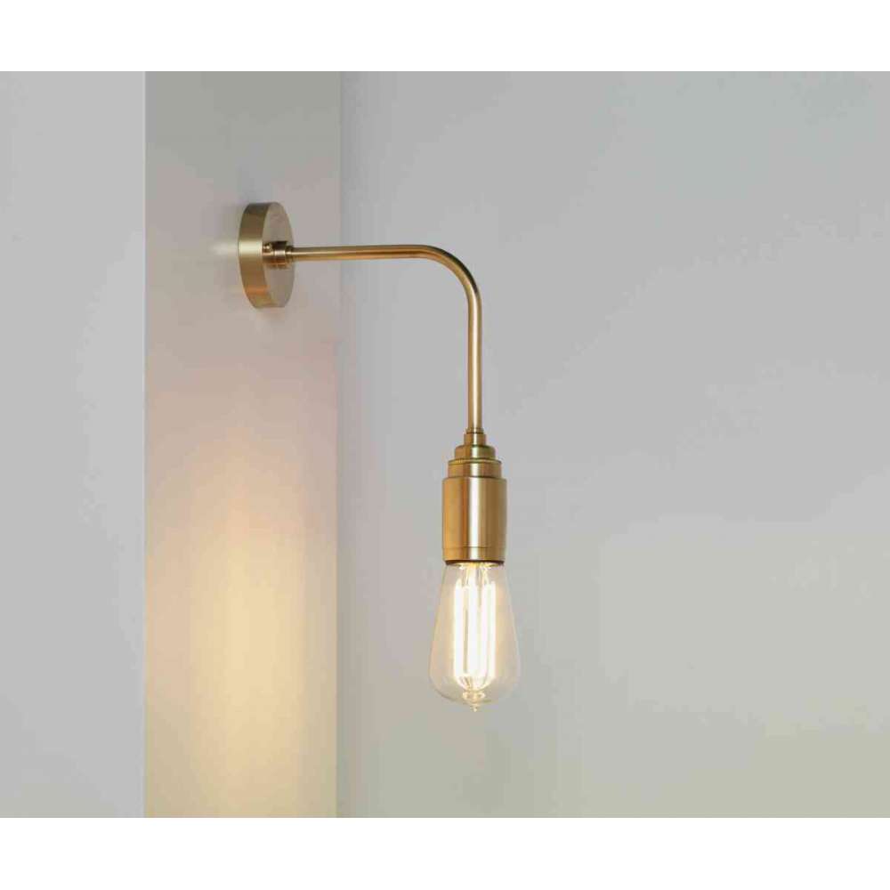 Kinkiet z mosiądzu z ramieniem 90° i standardową płytką ścienną.