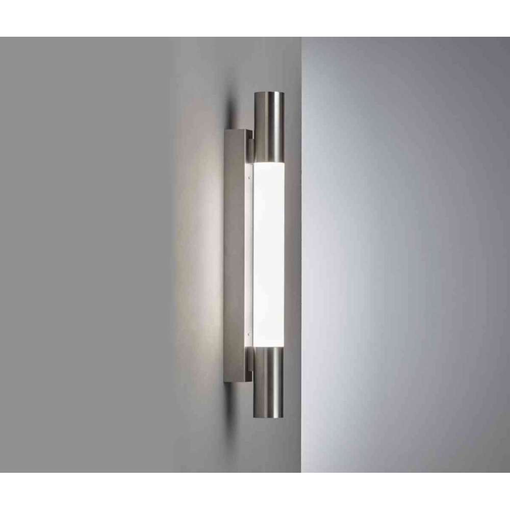 Lampa ścienna składa się z jasnej, satynowanej oprawy z pleksiglasu, dwóch otwartych cylindrów ze stali nierdzewnej i matowej, szczotkowanej obudowy wykonanej z wysokostopowej stali nierdzewnej. Nadaje się tylko do montażu poziomego.