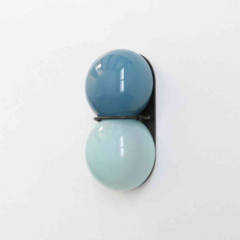 Kinkiet twin 1.0 to dyfuzor z ręcznie dmuchanego czeskiego szkła, składający się z dwóch spłaszczonych kulistych kształtów w dwóch kolorach (jeden biały, jeden złamanej bieli), które są stapiane ze sobą na gorąco na rurach dmuchawy szkła. Szkło jest przymocowane do baldachimu z litego mosiądzu za pomocą mosiężnej opaski, która znajduje się między dwiema kulami. Każda kula jest oświetlona od wewnątrz dwiema żarówkami, po jednej w każdej kuli. Kinkiet Twin 1.0 został zaprojektowany tak, aby spełniał wymagania ADA dotyczące użytku komercyjnego w miejscach publicznych, ponieważ zawsze mierzy mniej niż 4 cale całkowitej głębokości od powierzchni ściany. (UE): 220-240 V G9 3 W Maks.