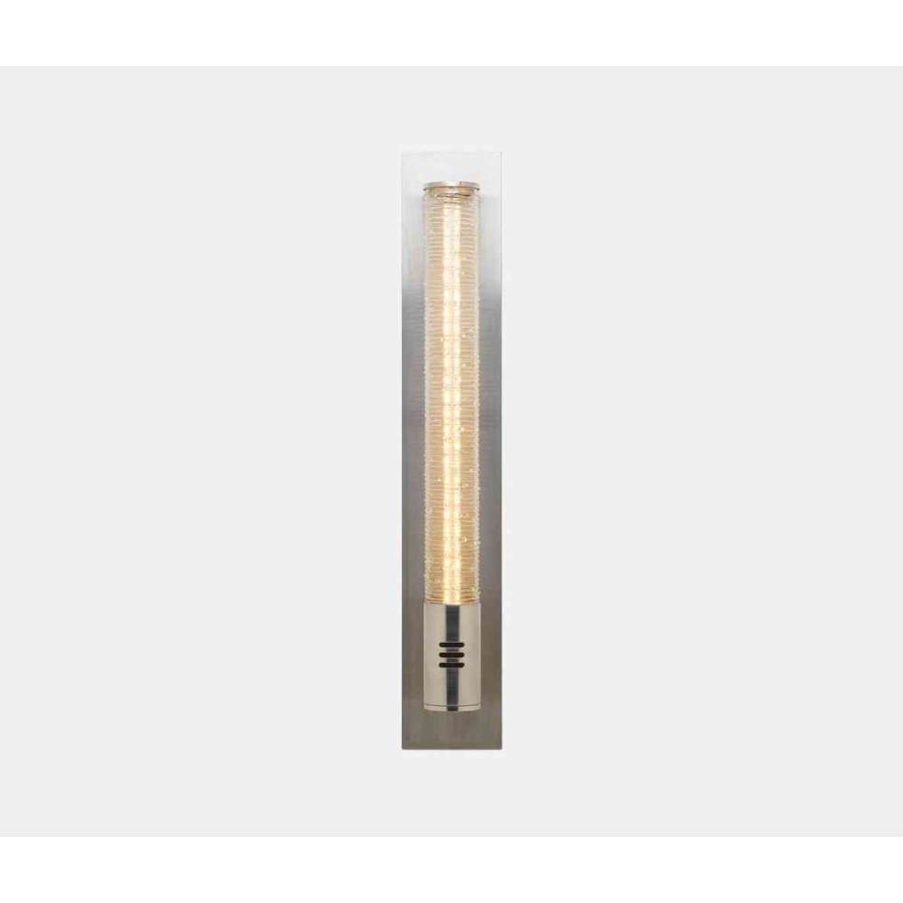 Rozmiary szkła: 2,25 "średnica x 20,5" h. Żarówki LED. Prostokątny kinkiet ścienny z pojedynczą zawieszką różdżka tamar, mocowaną do stalowego łącznika w dolnej części płytki. Górna część różdżki zakończona okrągłą płytką.