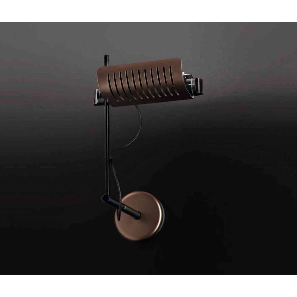 Lampa ścienna. Trzonek chromowany. Mocowania ścienne lakierowane. Regulowany odbłyśnik z lakierowanego aluminium. Wykończenie: Czarny/chromowany rufowy-anodowany brąz/czarny rufowy