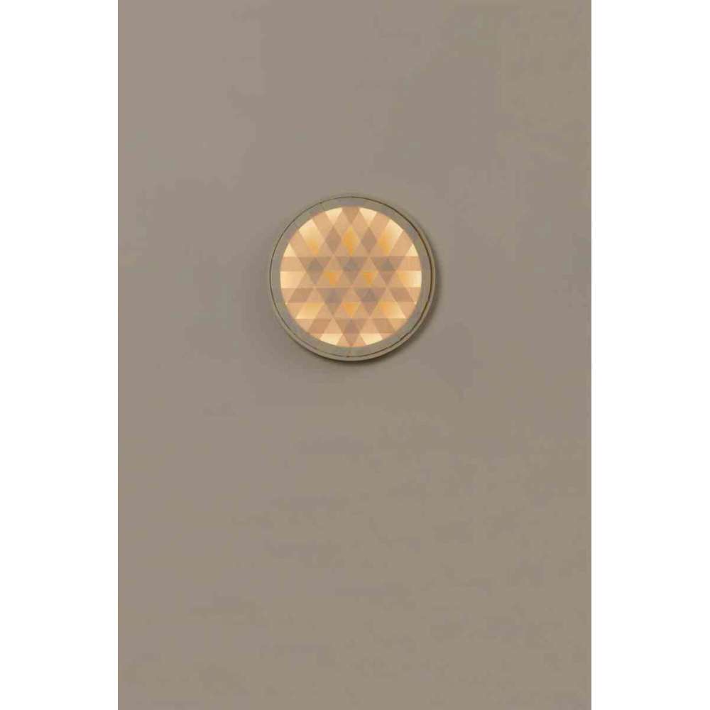 Ta rama tworzy aureolę światła, która wyłania się z półprzezroczystej taśmy, tworząc grę światłocienia. W tej serii dostępne są trzy rozmiary ręcznie klejonych kinkietów, co pozwala na tworzenie wielu różnych kompozycji, ponieważ można je łączyć na tej samej powierzchni, aby zapewnić zarówno światło, jak i sztukę. Powtarzający się wzór splotu równobocznego wprowadza spokój i spokój do atmosfery.