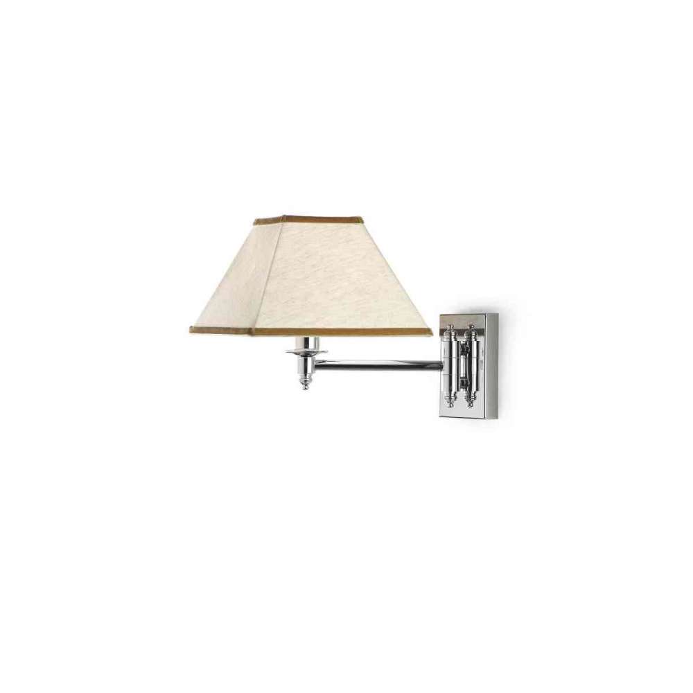 Kinkiet Voix z chromowanego mosiądzu z abażurem z tkaniny w kształcie ściętej piramidy. Dostępne w różnych wykończeniach. Wymiary: wys.28x24x31 cm