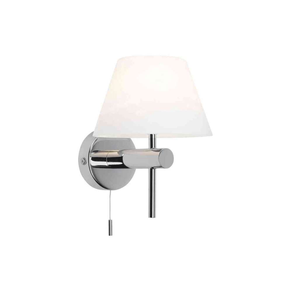 Wykończenie z polerowanego chromu, klosz z białego opalizującego szkła.