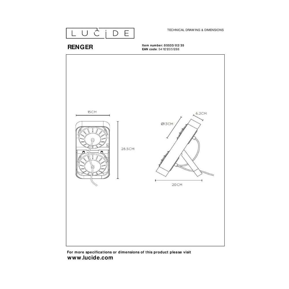 Lampa stołowa Lucide Renger 05533/02/35