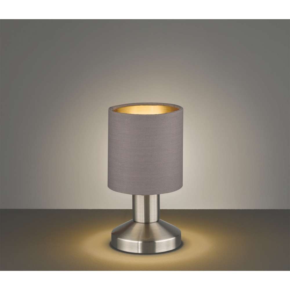 Źródło światła w zestawie nie Wysokość klosza / abażura 10 cm Wysokość 18 cm Średnica 9,5 cm Rodzaj lampy Lampa stołowa Rodzaj gwintu E14 Regulacja mocy światła nie Producent Trio Moc (Wat) 25 W Kolor Szary Kolor Srebrny IP (stopień szczelności) IP20 Ilość źródeł światła 1