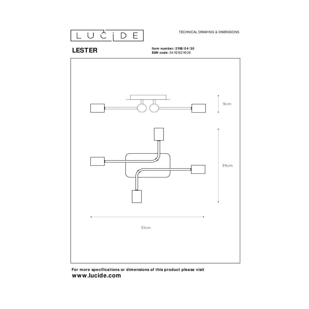 Lampa sufitowa Lucide Lester 21118/04/30