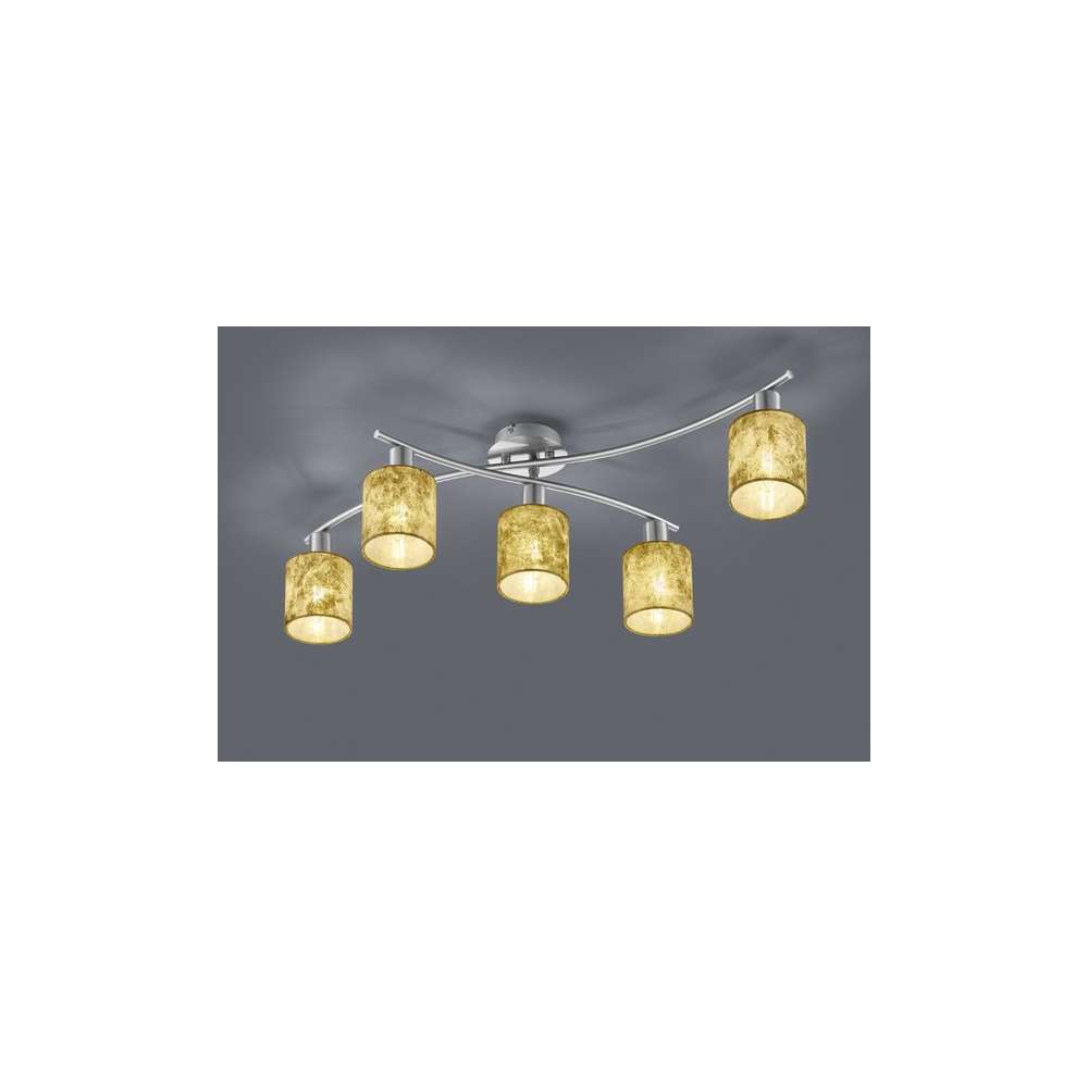 Źródło światła w zestawie nie Wysokość klosza / abażura 10 cm Wysokość 22 cm Średnica klosza / abażura 9,5 cm Szerokość 75 cm Rodzaj lampy Lampa sufitowa Rodzaj gwintu E14 Regulacja mocy światła tak Producent Trio Moc (Wat) 25 W Kolor Srebrny Kolor Złoty IP (stopień szczelności) IP20 Ilość źródeł światła 5 Głębokość 44,2 cm